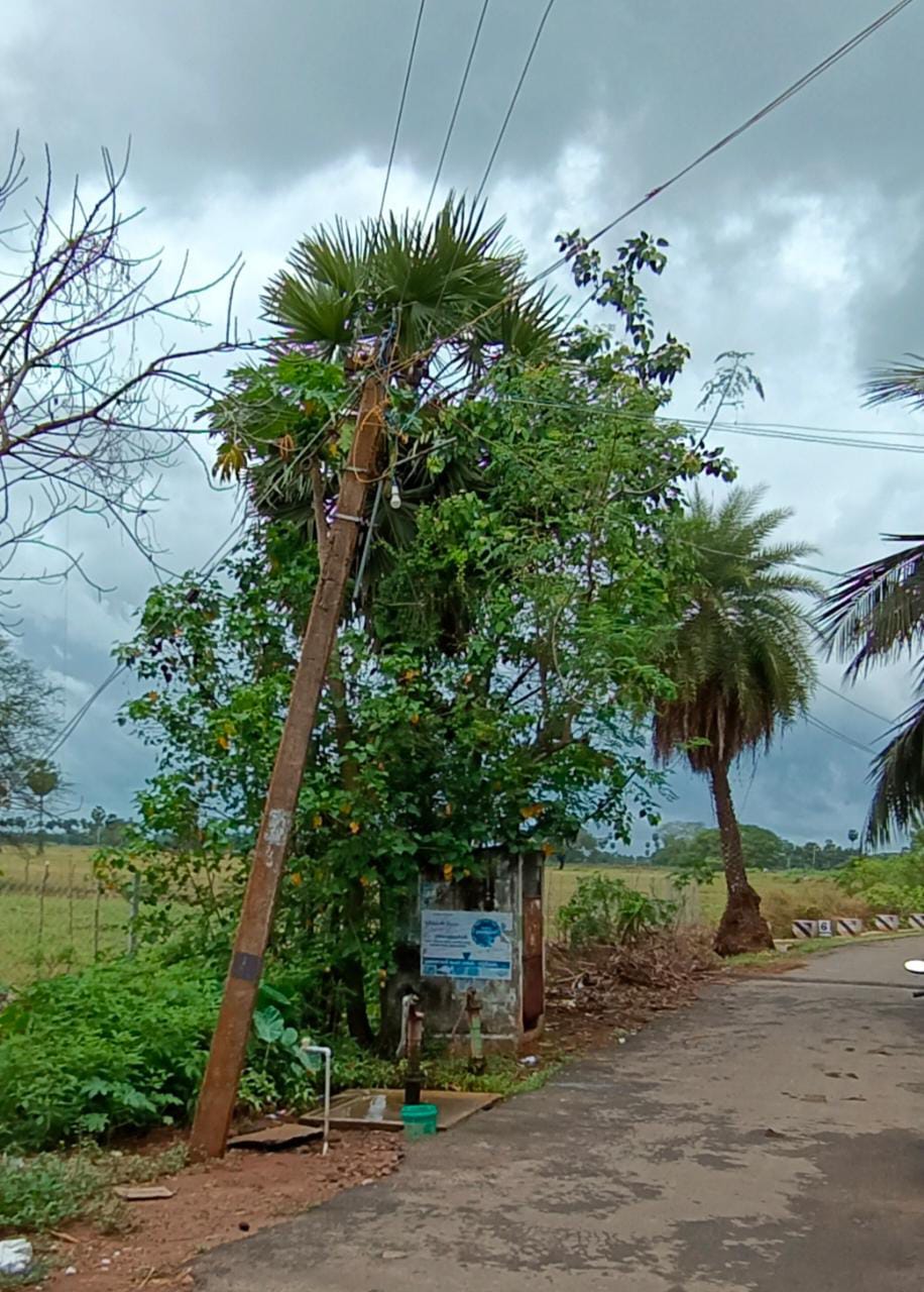 நாகை மாவட்டம் திருமருகல் ஒன்றியம் கட்டுமாவடி- ஆலத்தூர் சாலை தண்டாளம் பிள்ளையார்கோவில் அருகே ஆபத்தான நிலையில் மின்கம்பம் ஒன்று உள்ளது. இந்த மின்கம்பத்தின் மேற்பகுதியில் உள்ள சிமெண்டு காரைகள்பெயர்ந்து இரும்பு கம்பிகள் வெளியே தெரிகிறது. மேலும், மின்கம்பம் சாய்ந்த நிலையில் உள்ளது. இதனால் மின்கம்பம் எப்போது வேண்டுமானலும் கீழே விழுந்துவிடும் சூழல் ஏற்பட்டுள்ளது. இதன்காரணமாக மின்கம்பம் உள்ள பகுதியை பொதுமக்கள் மற்றும் வாகன ஓட்டிகள் அச்சத்துடன் கடந்து சென்று வருகின்றனர். எனவே, அசம்பாவிதம் எதுவும் ஏற்படும் முன் ஆபத்தான நிலையில் உள்ள மின்கம்பத்தை அகற்றிவிட்டு புதிய மின்கம்பம் அமைக்க நடவடிக்கை எடுப்பார்களா?