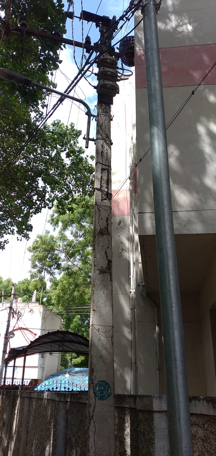 திருச்சி மாநகராட்சி ஸ்ரீரங்கம் காமுதோட்டத்தெரு சாலையில் உள்ள பி.எஸ்.என்.எல். அலுவலக வாசல் பகுதியில் அமைக்கப்பட்டுள்ள மின்கம்பம் சிதிலமடைந்து சிமெண்டு பூச்சுகள் உதிர்ந்து எப்போது வேண்டுமானாலும் முறிந்து விழும் நிலையில் உள்ளது. மேலும் இதே பகுதியில் உள்ள ஒரு அடுக்குமாடி குடியிருப்பு பகுதியின் வாசலில் அமைக்கப்பட்டுள்ள மின்கம்பமும் ஆபத்தான நிலையில் காணப்படுகிறது. பொதுமக்கள் நடமாட்டத்தின்போது இந்த மின்கம்பங்கள் முறிந்து விழுந்தால் உயிரிழப்பு ஏற்பட அதிக வாய்ப்பு உள்ளது. எனவே இதுகுறித்து சம்பந்தப்பட்ட மின்சாரத்துறை அதிகாரிகள் நடவடிக்கை எடுக்க வேண்டும் என கேட்டுக்கொள்கிறோம்.