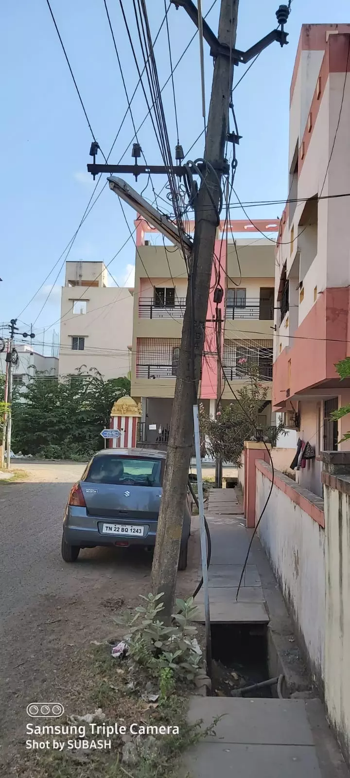 சென்னை சிட்லபாக்கம் நேரு நகர் பகுதியில் இருக்கும் மின் கம்பம் சாய்ந்த நிலையில் அபாயகரமாக காட்சி தருகிறது. விபரீதங்கள் எதுவும் ஏற்படும் முன்பு மின் வாரிய அதிகாரிகள் கள ஆய்வு செய்து, சாய்ந்த மின் கம்பத்தை சீரமைக்க உடனடி நடவடிக்கை மேற்கொள்ளப்படுமா?
