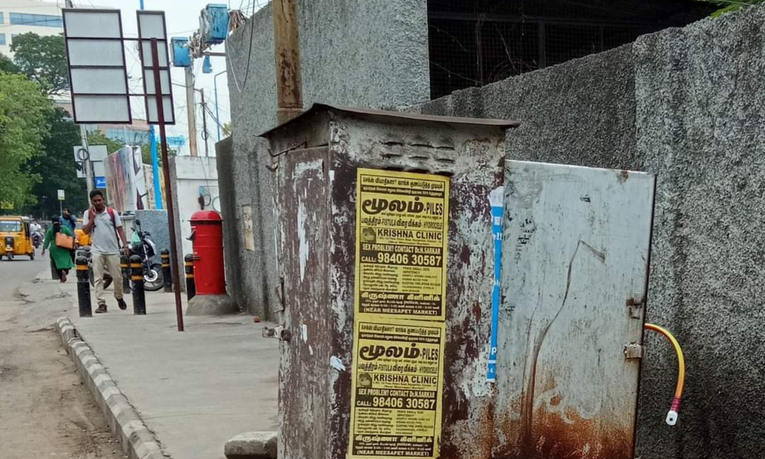 சென்னை ராயப்பேட்டை "வெஸ்ட் 'காட்' சாலையில் உள்ள பிரபல தியேட்டருக்கு அருகில் இருக்கும் நடைபாதையை ஒட்டி அமைக்கப்பட்டுள்ள மின் இணைப்பு பெட்டி திறந்த நிலையிலும், வயர்கள் வெளியே நீட்டிக்கொண்டும் ஆபத்தாக காட்சி தருகிறது. மேலும் அடிக்கடி இந்த மின்சார பெட்டியிலிருந்து தீப்பொறிகளும் வெளியே தெறிக்கின்றன. எனவே பொதுமக்களின் நலன் கருதி திறந்த நிலையில் ஆபத்தாக காட்சி தரும் இந்த மின் இணைப்பு பெட்டியை உடனடியாக சரி செய்ய நடவடிக்கை எடுக்க வேண்டும்.
