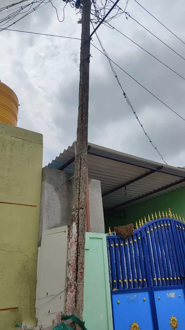 ஓசூர் சானசந்திரம் கடவுள்நகர் பகுதியில் உள்ள மின்கம்பத்தில் சிமெண்டு பூச்சு பெயர்ந்து விழுந்தும், கம்பிகள் வெளியே தெரிந்தவாறும் மிகவும் மோசமான நிலையில் உள்ளது. இந்த மின்கம்பம் எந்த நேரத்திலும் துண்டாகி விழும் அபாயத்தில் உள்ளது. எனவே விபத்து எதுவும் ஏற்படும் முன் இந்த மின்கம்பத்தை உடனடியாக மாற்றி புதிய மின்கம்பம் அமைக்க மின்வாரிய துறை அதிகாரிகள் நடவடிக்கை எடுக்க வேண்டும்.