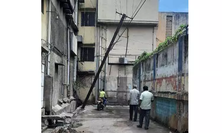 வேலூர் பில்டர்பெட் ரோடு முதல் வலப்பக்க சந்தில் ஒரு மின்கம்பம் உள்ளது. கடந்த சில நாட்களாக செய்த பலத்த மழை மற்றும் காற்றின் காரணமாக அந்த இரும்பு மின் கம்பம் சாய்ந்த நிலையில் எந்த நேரத்திலும் உடைந்துவிழும் ஆபத்தான நிலையில் இருக்கிறது. இந்த வழியாகத்தான் பொதுமக்கள் இருசக்கர வாகனத்தில் பெண்ட்லேண்ண்ட் அரசு மருத்துவமனைக்கு செல்கின்றனர். எனவே அசம்பாவிதம் நடைபெறுவதற்குள் இந்த மின் கம்பத்தை மாற்ற நடவடிக்கை எடுக்க வேண்டும்.