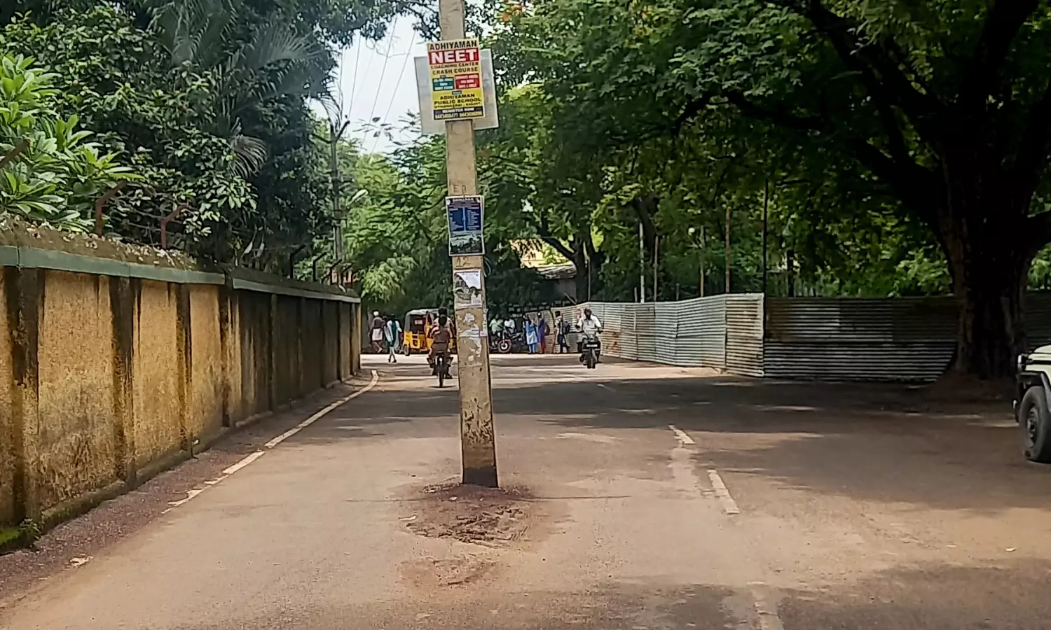 திருப்பத்தூர் மாவட்ட கலெக்டர் அலுவலகம் பின்புறம் உள்ள தார் சாலையின் நடுவில் மின்கம்பம் உள்ளது. இந்த சாலையில் அரசு நிதி உதவி பெறும் பள்ளி உள்ளது. இங்கு படிக்கும் மாணவ- மாணவிகள் மற்றும் மாவட்ட பதிவாளர் அலுவலகம், குடியிருப்புகளும் உள்ளன. இந்த பகுதிகளுக்கு வாகனங்களில் செல்பவர்களுக்கு மின்கம்பம் தடையாக உள்து. போக்குவரத்துக்கு தடையாக உள்ள மின்கம்பத்தை மாற்றியமைக்க வேண்டும்.