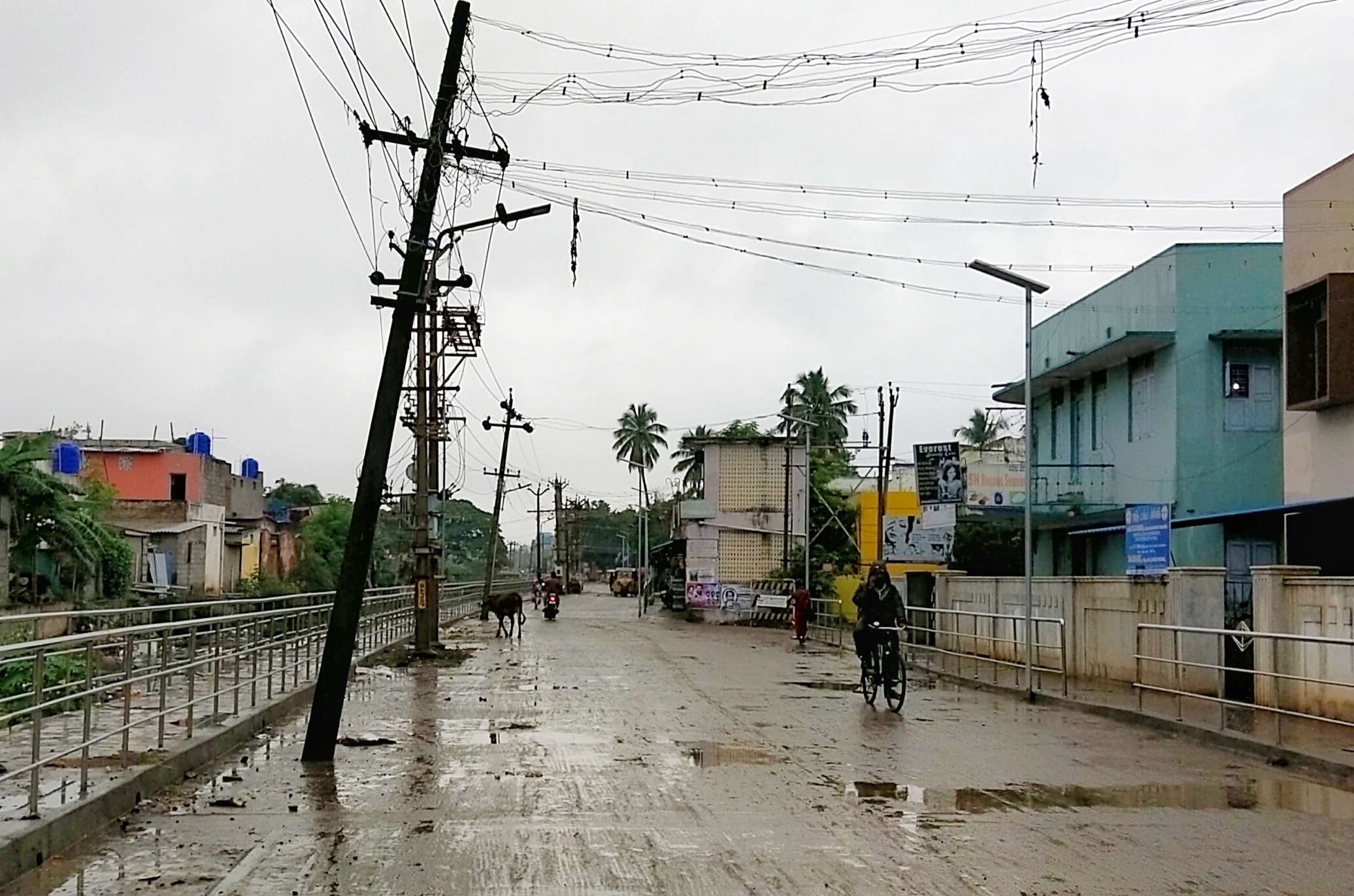 வேலூர் கஸ்பா மெயின் சாலை ஓரம் மின் கம்பங்கள் உள்ளன. அவற்றில் ஒரு மின்கம்பம் சாய்ந்தவாறு ஆபத்தான நிலையில் நிற்கிறது. அப்பகுதியில் வாகனப் போக்குவரத்து மற்றும் பொதுமக்கள் நடமாட்டம் அதிகமாக காணப்படுகிறது. தற்போது மழை பெய்து வருவதால் அசம்பாவிதம் ஏற்படும் முன் சம்பந்தப்பட்ட துறை அதிகாரிகள் மின்கம்பத்தை சரி செய்ய நடவடிக்கை எடுப்பார்களா?