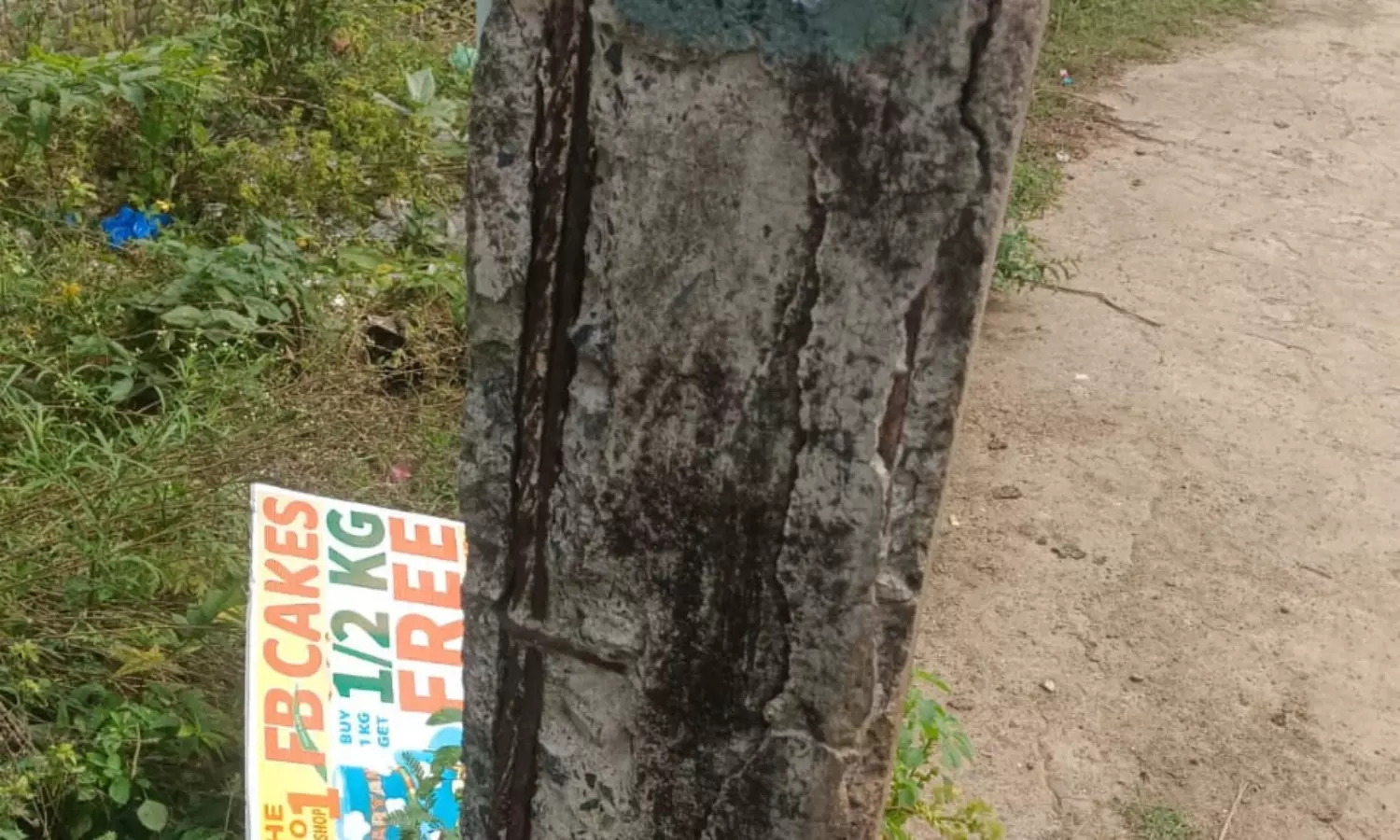 காஞ்சீபுரம் மாவட்டம் குன்றத்தூர் ஒன்றியம் படப்பை ஊராட்சி ஆத்தனஞ்சேரி காலனி, காந்தி தெருவில் விநாயகர் கோவில் அருகே உள்ள மின்கம்பம் சேதமடைந்து அதன் சிமெண்டு பெயர்ந்து கீழே விழும் நிலையில் உள்ளது. இதனால் கோவிலுக்கு வரும் மக்கள் அச்சத்துடனே செல்கின்றனர். எனவே சம்பந்தப்பட்ட துறை மின்வாரிய அதிகாரிகள் உடனடியாக நடவடிக்கை எடுத்து மின்கம்பத்தை சரிசெய்து தரவேண்டி அப்பகுதி மக்கள் கோரிக்கை வைக்கின்றனர்.