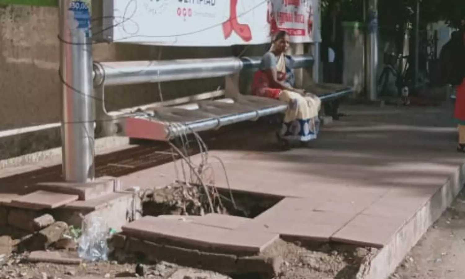 சென்னை மயிலாப்பூர் வள்ளுவர் சிலை பஸ் நிறுத்தம் மிகவும் பயங்கரமாக காட்சியளிக்கிறது. பஸ் நிறுத்தத்தில் உள்ள சிமெண்ட் மேடை பெயர்ந்தும், கற்கள் சிதைந்தும் காணப்படுகிறது. இரவு நேரத்தில் பஸ் நிறுத்தத்துக்கு வருபவர்கள் தடுக்கி கீழே விழுவது போன்ற சம்பவங்கள் அடிக்கடி நடக்கிறது. கூடிய விரைவில் சிதைந்த பஸ் நிறுத்தத்தை சீரமைக்க நடவடிக்கை எடுக்க வேண்டுகிறோம்.