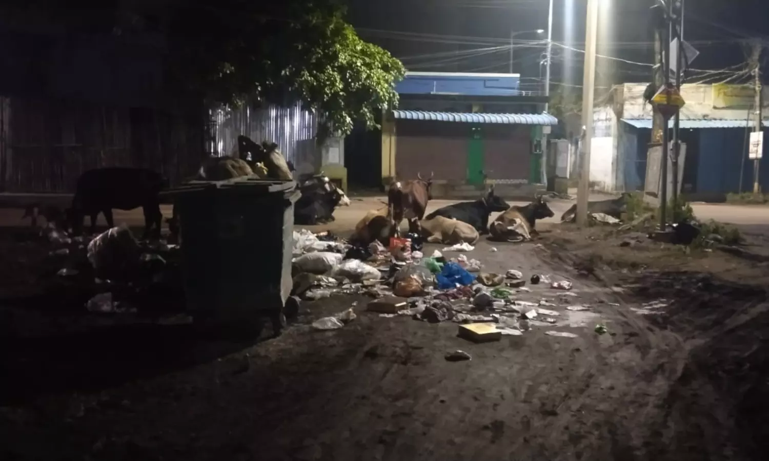 சென்னை மாதனாங்குப்பம் பகுதியில் உள்ள திருமால் நகர் தெருமுனையில் குடியிருப்புகளின் குப்பைகளை அகற்றுவதற்காக மாநகராட்சி சார்பில் 4 குப்பை தொட்டிகள் அமைக்கப்பட்டுள்ளது. முறையாக அகற்றப்படாத குப்பைகளால் ஏற்படும் பயங்கர துர்நாற்றம் குடியிருப்புவாசிகளையும் பாதசாரிகளையும் வெகுவாக பாதிக்கிறது. மேலும் இரவு நேரங்களில் மாடுகள் தெருமுனையை ஆக்கிரமித்தும் அதன் கழிவுகள் அங்கேயே தேக்கமும் அடைந்துள்ளது. இதனால் வேலை முடிந்து வீடு செல்வோரின் நிலை பரிதாபமாகி உள்ளது. எனவே குடியிருப்புவாசிகளுக்கு இடையூறாக உள்ள இந்த குப்பை தொட்டிகளை மாற்று இடத்தில் அமைக்கவும் மாடுகளின் தொல்லையை கட்டுப்படுத்தவும் சம்பந்தப்பட்ட மாநகராட்சிதுறை அதிகாரிகள் உடனடி நடவடிக்கை எடுக்க வேண்டும்.