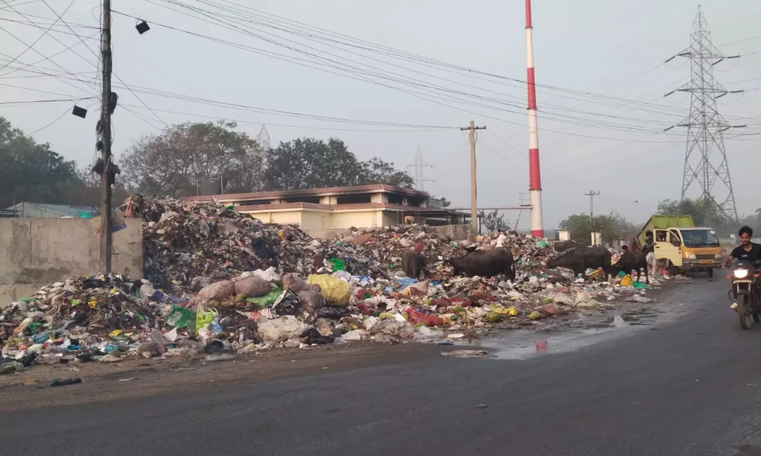 சென்னை திருவேற்காடு நகராட்சிக்கு உட்பட்ட திருவேற்காடு-அம்பத்தூர் சாலையில் உள்ள குப்பை கிடங்கில் கொட்டப்படும் குப்பைகள் கடந்த சில வாரங்களாக அகற்றப்படாமல் அப்படியே போடப்பட்டுள்ளன. இதனால் குப்பைக் கிடங்கு நிரம்பி குப்பைகள் மலைப்போல் தேங்கி சாலையிலும் கிடக்கின்றன. அந்த வழியாக செல்லும்போது மிகுந்த துர்நாற்றம் வீசுகிறது. இதனால் சாலையில் செல்லும் வாகன ஓட்டிகளும், பொதுமக்களும் மூக்கை மூடிக்கொண்டு செல்கின்றனர். மேலும் நோய்த்தொற்று பரவும் அபாய நிலையும் ஏற்பட்டுள்ளது. எனவே சம்பந்தப்பட்ட மாநகராட்சி துறை அதிகாரிகள் விரைந்து நடவடிக்கை எடுத்து குப்பைகளை அகற்ற வேண்டும்.
