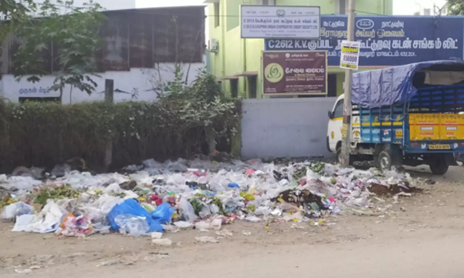 காட்பாடி-குடியாத்தம் தேசிய நெடுஞ்சாலையில் கே.வி.குப்பம் போலீஸ் நிலையம் அருகில் உள்ள நகர கூட்டுறவு வங்கி எதிரில் குப்பைகள் குவியலாக உள்ளது. அதில் ஜவுளிக்கடை, மருத்துவமனை கழிவுகள், பிளாஸ்டிக் குப்பைகள் அதிகமாகக் கிடக்கின்றன. அந்தக் குப்பைகளால் துர்நாற்றம் வீசுகிறது. சுகாதாரச் சீர்கேடும் ஏற்படுகிறது. ஊராட்சி நிர்வாகம் உடனடியாக நடவடிக்கை எடுத்து குப்பைகளை அகற்ற வேண்டும்.