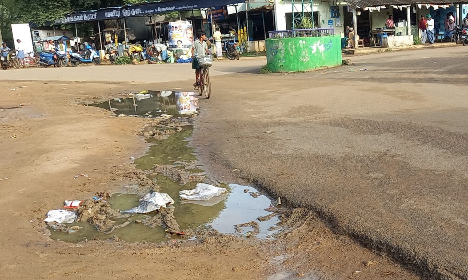 புதுக்கோட்டை மாவட்டம், கீரமங்கலம் அருகே உள்ள கொத்தமங்கலம் வாடிமாநகர் கடைவீதியில் நூற்றுக்கணக்கான கடைகள் உள்ளன. ஆயிரக்கணக்கான மக்கள் வந்து செல்லும் இடத்தில் சாலையோரத்தில் வடிகால் வசதி அமைக்கப்படாமல் உள்ளதால் தற்போது பெய்த மழைநீர் சாக்கடை நீர்போல் தேங்கி நிற்கிறது. இதனால் இப்பகுதியில் கொசுக்கள் உற்பத்தியாகி நோய் பரவும் அபாயம் உள்ளது. எனவே இதுகுறித்து சம்பந்தப்பட்ட அதிகாரிகள் நடவடிக்கை எடுக்க வேண்டும் என கேட்டுக்கொள்கிறோம்.