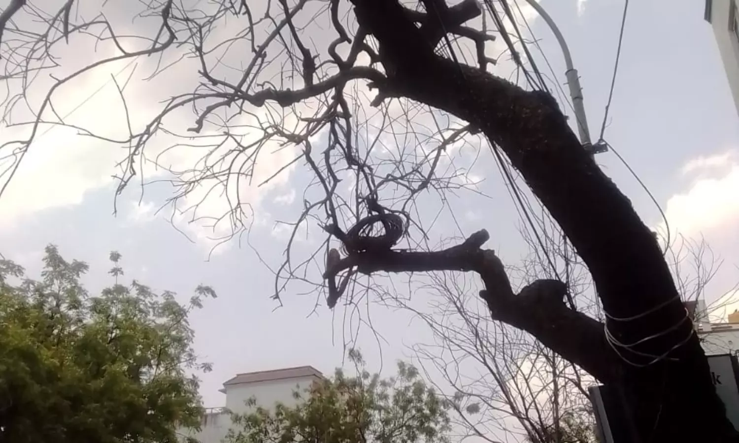 சென்னை கொளத்தூர் மக்காரம் தோட்டம் பகுதியில் சாலையோரம் பெரிய மரம் ஒன்று உள்ளது. பட்டுபோன இந்த மரம், எப்போது வேண்டுமானாலும் முறிந்து விழும் வகையில் ஆபத்தாக காட்சி அளிக்கிறது.