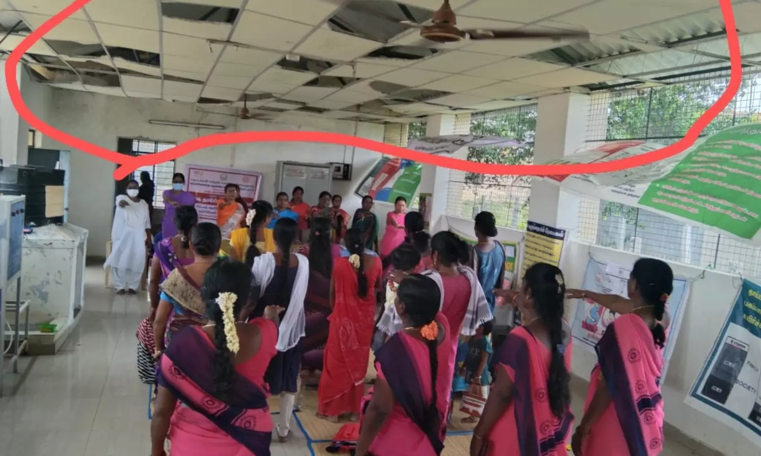 சேலம் மகுடஞ்சாவடியில் அங்கன்வாடி மையம் அமைந்துள்ளது. இந்த பள்ளியின் மேற்கூரையில் தெர்மாகோல் சேதமடைந்து கீழே விழுகின்றன. எனவே அசம்பாவிதங்கள் நடக்கும் முன் சம்பந்தப்பட்ட அதிகாரிகள் விரைவில் சீரமைக்க வேண்டும். அல்லது கான்கிரீட் தளம் அமைக்க நடவடிக்கை எடுக்க வேண்டும்.