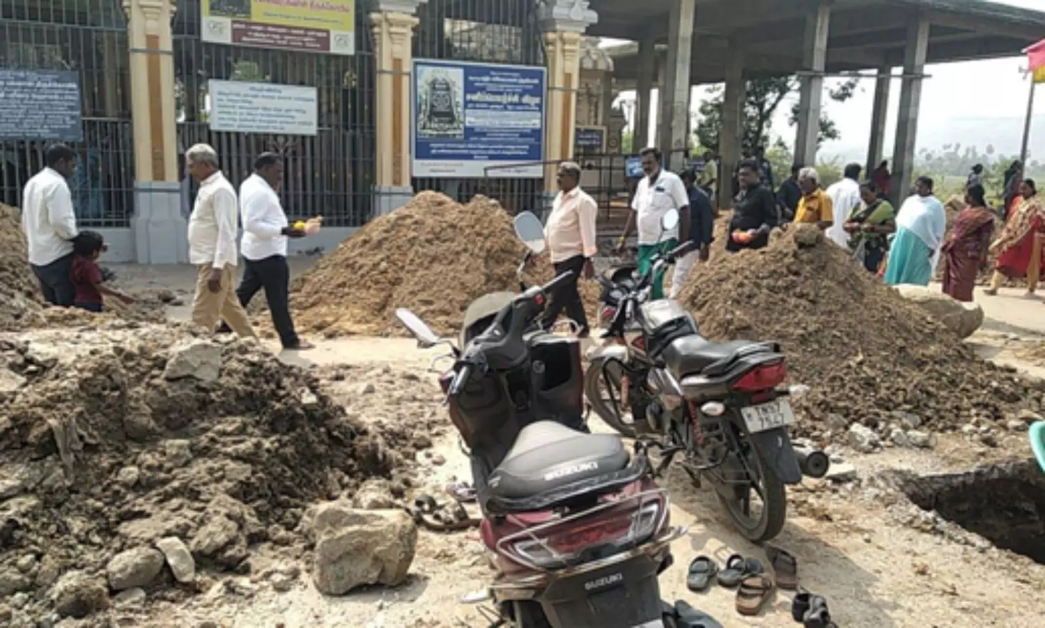 சந்தவாசல் அருகே ஏரிக்குப்பம் கிராமத்தில் யந்திரசனீஸ்வரன் கோவில் உள்ளது. வாரந்தோறும் சனிக்கிழமை அன்று ஏராளமான பக்தர்கள் கோவிலுக்கு வந்து சாமி தரிசனம் செய்கின்றனர். பக்தர்களுக்கு போதிய இடவசதி இல்லாததால் மண்டபம் கட்டும் பணிக்கு பள்ளம் தோண்டினர். ஆனால் பணிகளை இன்னும் தொடங்கவில்லை. அந்தப் பள்ளத்தால் பக்தர்களுக்கு அச்சமாக உள்ளது. ஏரிக்குப்பம் யந்திர சனீஸ்வரன் கோவிலில் மண்டபம் கட்டும் பணியை விரைந்து தொடங்கி முடிக்க வேண்டும். அதிகாரிகள் நடவடிக்கை எடுப்பார்களா?