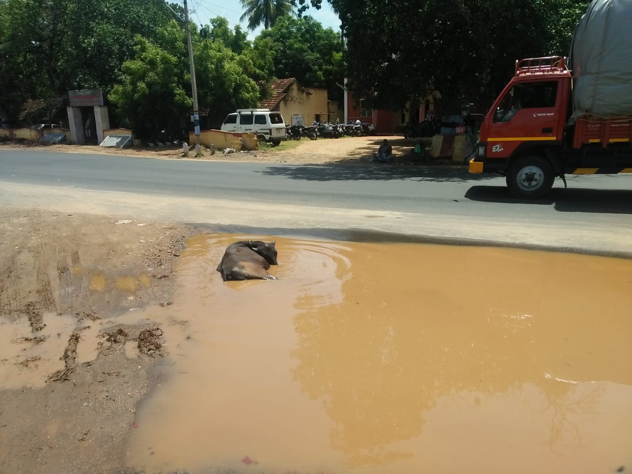 அறச்சலூர் போலீஸ் நிலையம் அருகே மாரியம்மன் கோவில் சாலையை இணைக்கும் இணைப்பு சாலையில் பெரிய பள்ளம் ஏற்பட்டுள்ளது. இது தாழ்வான பகுதி என்பதால் தற்போது மழை தண்ணீர் அங்கு குளம்போல் தேங்கியுள்ளது. கால்நடைகள் அதில் குளிக்கின்றன. எனவே பொதுமக்கள் நலன் கருதி நெடுஞ்சாலைத்துறை அதிகாரிகள் பள்ளமான இணைப்பு சாலையை சீரமைக்க வேண்டும்.