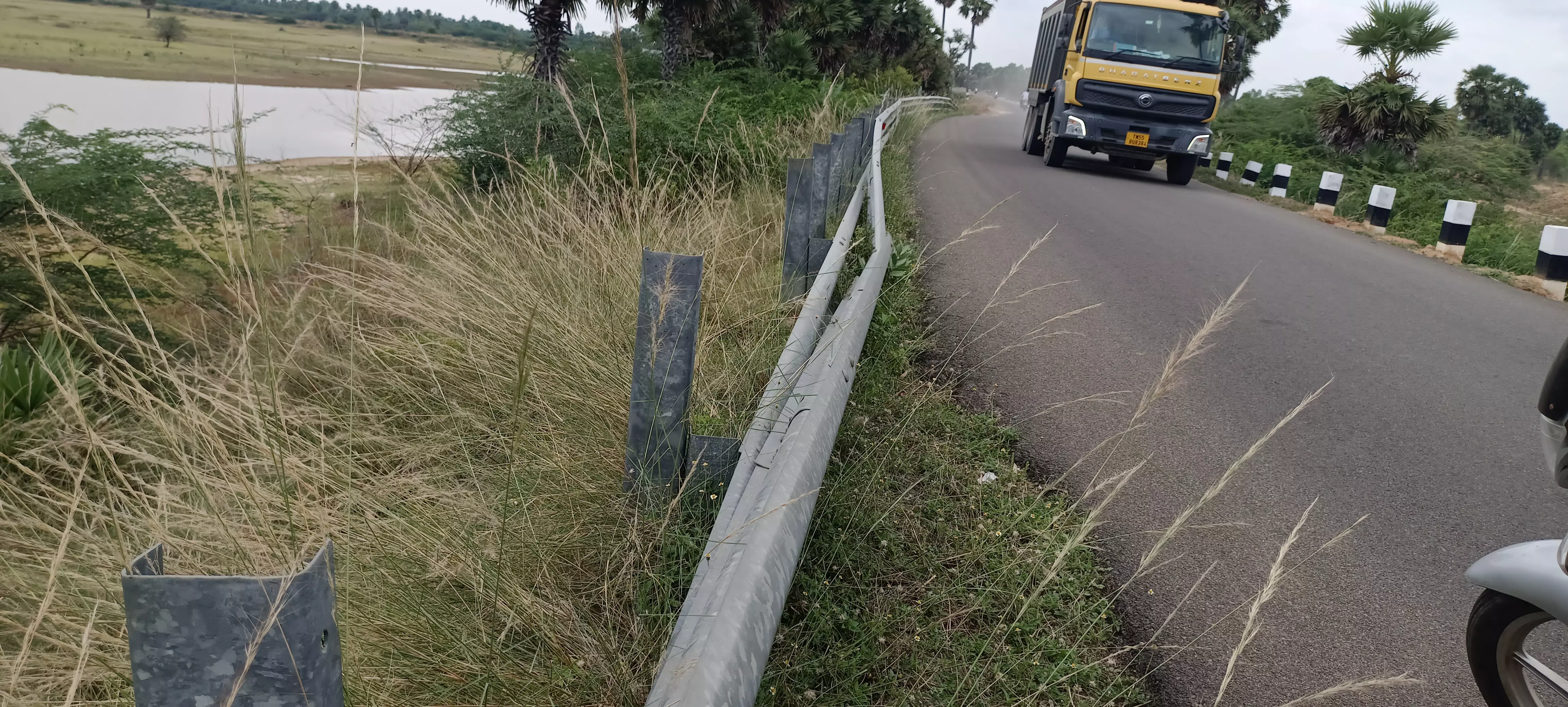 புதுக்கோட்டையில் இருந்து அரிமளம் செல்லும் சாலையில் பெருங்குடி விலக்கு பகுதியில் இருந்து நெய்வாசல்பட்டி விலக்கு ரோடு வரை சாலையோரம் குளம் மற்றொரு பகுதியில் மிகப்பெரிய பள்ளம் அமைந்துள்ளதால் விபத்துக்கள் ஏற்படாமல் தடுக்கும் பொருட்டு சாலையின் இருபுறங்களிலும் தடுப்பு கம்பிகள் அமைக்கப்பட்டுள்ளன. இந்த தடுப்புகம்பிகளின் பட்டைகள் ஆங்காங்கே உடைந்து கிடக்கிறது. இதனால் இரவு நேரங்களில் வாகன ஓட்டிகளுக்கு மிகப்பெரிய ஆபத்து ஏற்படக்கூடிய நிலை ஏற்பட்டுள்ளது. எனவே இருபுறமும் உள்ள தடுப்பு கம்பிகளை உடனடியாக சரி செய்ய சம்பந்தப்பட்ட அதிகாரிகள் நடவடிக்கை எடுக்க வேண்டும் என கேட்டுக்கொள்கிறோம்.