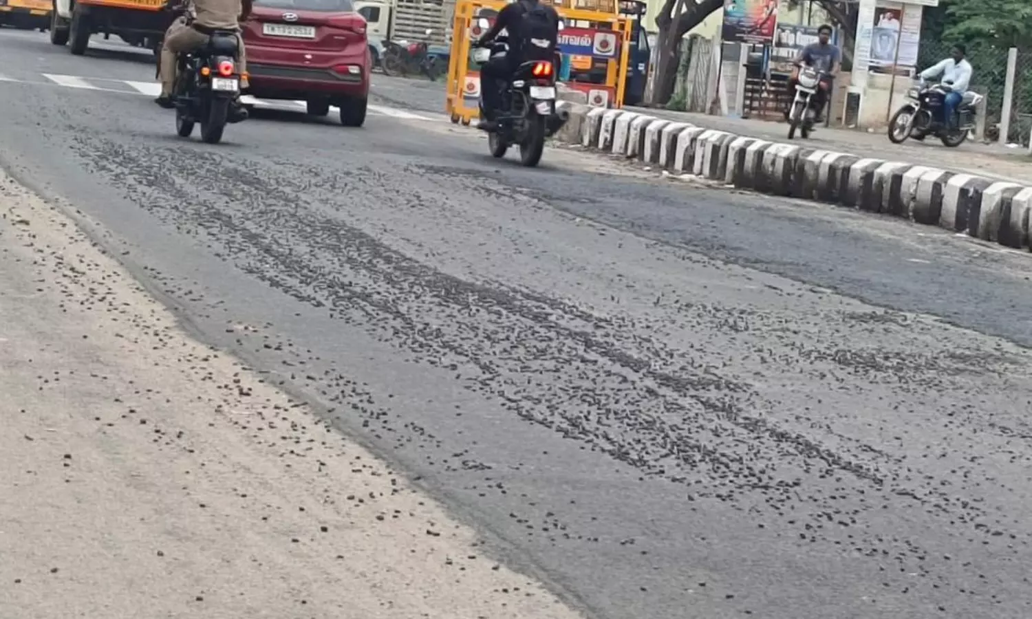 மூலக்குளம் குண்டு சாலை-மேட்டுப்பாளையம் சாலையில் ஜல்லி கற்கள் பெயர்ந்து சாலையில் சிதறி கிடக்கிறது. இருசக்கர வாகனங்களில் செல்பவர்கள் ஜல்லி கற்களில் சறுக்கி விழுந்து விபத்தில் சிக்கும் நிலை உள்ளது. இதனை சரிசெய்ய அதிகாரிகள் நடவடிக்கை எடுப்பார்களா?