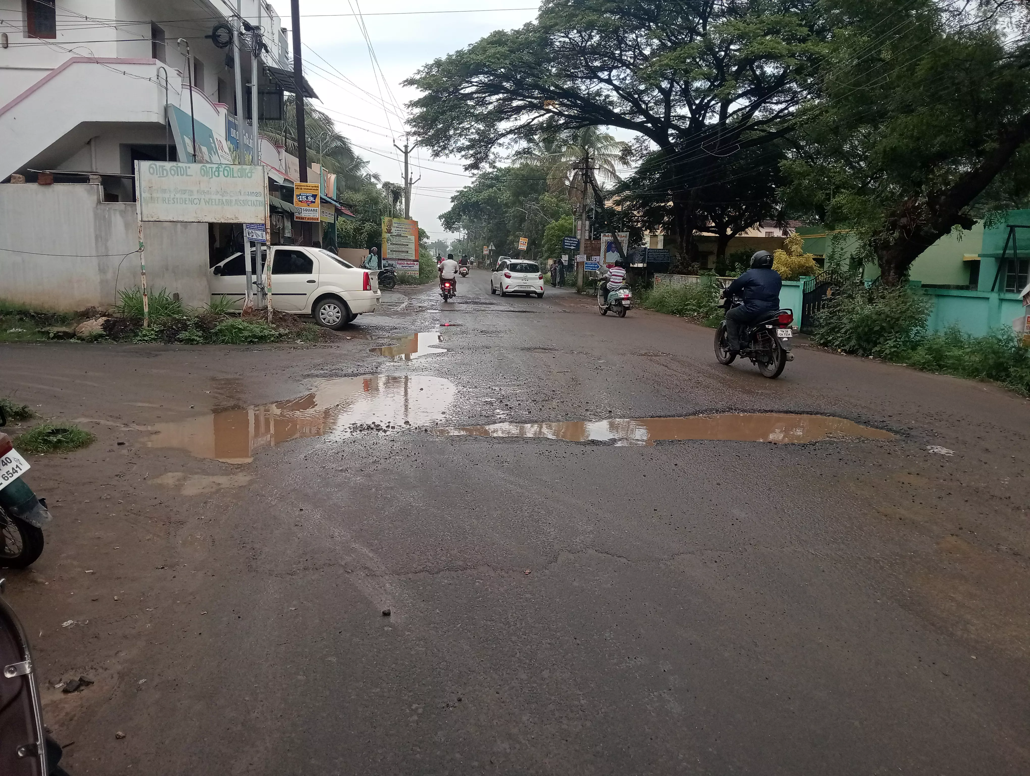 கோவையை அடுத்த வெள்ளக்கிணறு-சமத்துவபுரம் சாலையில் அம்மாசைகவுண்டர் வீதியில் பல இடங்களில் சாலை பெயர்ந்து குண்டும், குழியுமாக கிடக்கிறது. இதனால் அந்த வழியாக சென்று வாகன ஓட்டிகளும், பாதசாரிகளும் பல்வேறு சிரமங்களை சந்தித்து வருகின்றனர். தற்போது மழை பெய்து வருவதால் சாலையில் உள்ள குழிகளில் மழைநீர் தேங்கி நிற்கிறது. இதனால் சிறு, சிறு விபத்துகளும் நடைபெற்று வருகிறது. எனவே அந்த சாலையை உடனடியாக சீரமைக்க அதிகாரிகள் முன்வர வேண்டும்.