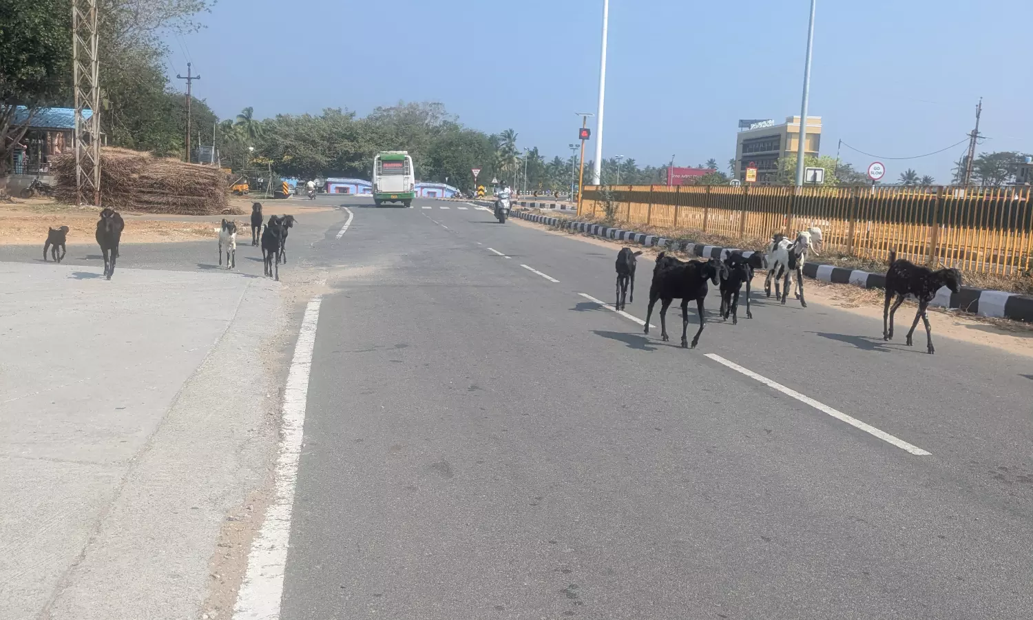 நாகர்கோவில்-கன்னியாகுமரி நெஞ்சாலையில் மகாதானபுரம் ரவுண்டானா உள்ளது. இந்த ரவுண்டானா அருகில் உள்ள சர்வீஸ் சாலையில் காலை மற்றும் மாலை வேளைகளில் ஆடுகள் கூட்டமாக செல்கின்றன. அவ்வாறு செல்லும் ஆடுகள் நான்கு வழிச்சாலையின் குறுக்கே அடிக்கடி பாய்கின்றன. இதனால் அந்த வழியாக செல்லும் வாகன ஓட்டிகள் அடிக்கடி விபத்தில் சிக்கி வருகின்றனர். எனவே, வாகன ஓட்டிகள் நலன்கருதி மகாதானபுரம் ரவுண்டானா பகுதியில் ஆடுகள் நடமாட்டத்தை தடுக்க அதிகாரிகள் நடவடிக்கை எடுக்க வேண்டும்.