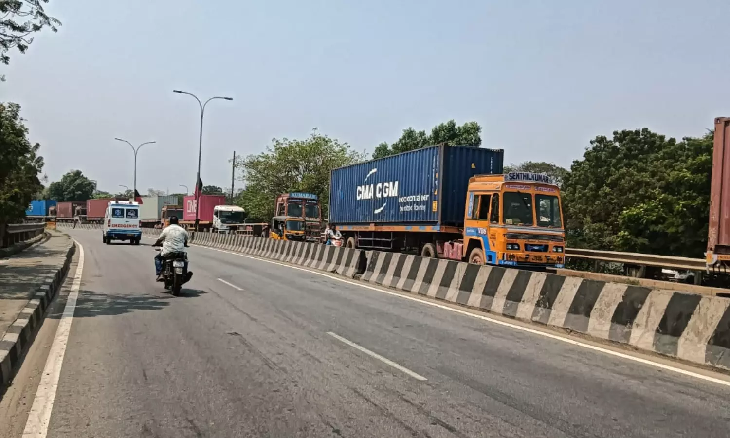 சென்னை எர்ணாவூர் பகுதியில் உள்ள எண்ணூர்-எர்ணாவூர் மேம்பாலம் அதிகமான வாகன ஓட்டிகள் செல்லும் மிக முக்கிய பாலம். இந்த மேம்பாலத்தில் துறைமுகத்துக்கு செல்லும் கனரக வாகனங்கள் பாலத்தில் ஓரத்தில் ஆங்காங்கே நிறுத்தப்பட்டுள்ளன. இதனால் பாலத்தில் செல்லும் வாகன ஓட்டிகள் மிகுந்த சிரமம் அடைகின்றன். சில சமயங்களில் போக்குவரத்து நெரிசல் ஏற்படுகிறது. எனவே சம்பந்தப்பட்ட மாநகராட்சி துறை அதிகாரிகள் நடவடிக்கை எடுக்கவேண்டும்.