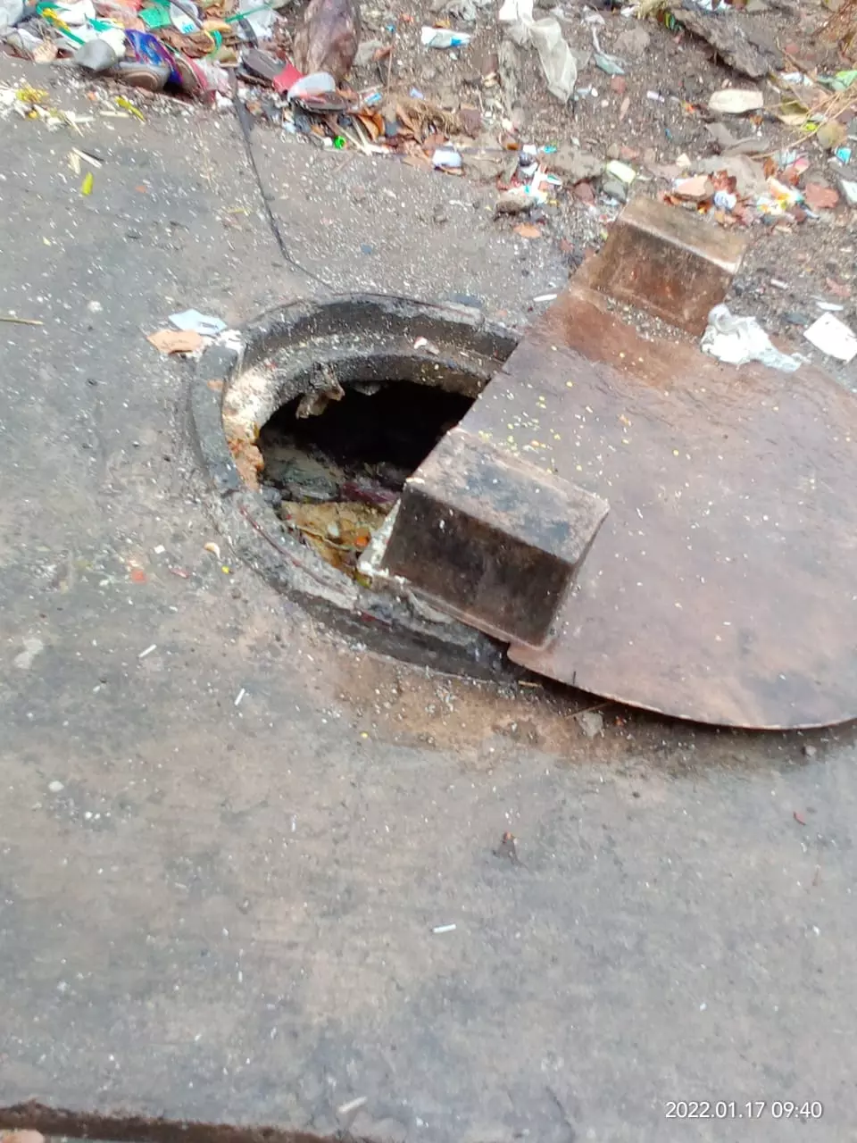 சென்னை துரைப்பாக்கம் ஒக்கியம் பகுதியில் உள்ள குடிசை மாற்று வாரியம் கண்ணகி தெருவில் ஆங்காங்கே உள்ள கழிவுநீர் வடிகால்வாய்களில் சில மூடிகள் இல்லாமலும் , பாதி உடைந்த நிலையிலும் இருக்கின்றன. மேலும் சிலவற்றை அட்டையை கொண்டு தற்காலிகமாக மூடி வைத்துள்ளனர். இதுபோன்ற திறந்த நிலையில் இருக்கும் வடிகால்வாய்களில் யாரும் தவறி விழும் முன்பு மாநகராட்சி ஊழியர்கள் வடிகால்வாய்களை மூடுவதற்கு வழி செய்ய வேண்டும்.