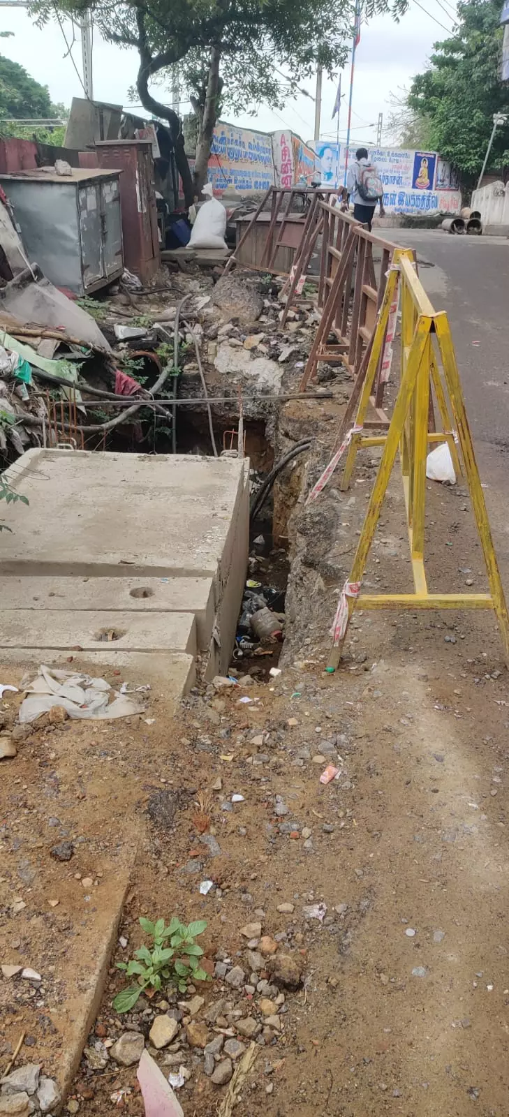 சென்னை சைதாப்பேட்டை ரெயில் நிலையம் அருகே ரெட்டிகுப்பம் செல்லும் சாலை ஓரத்தில் பள்ளம் உருவாகி அதில் கழிவு நீர் தேங்கி உள்ளது. தற்காலிகமாக அதை தடுப்பு வேலி கொண்டு மூடியுள்ளனர். ஆனால் இந்த சாலையில் தினமும் அதிகமான வாகனங்கள் சென்று வருவதால் விபத்து ஏற்படும் அபாயம் இருக்கிறது. எனவே அந்த பள்ளத்தை சரி செய்து சீரான போக்குவரத்துக்கு வழி செய்ய வேண்டும்.