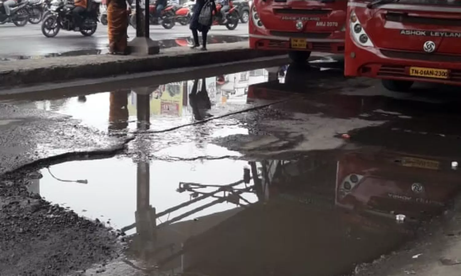 சென்னை வேளச்சேரி பஸ் நிலையத்தில் கழிவு நீர் தேங்கி வருகிறது. நீண்ட நாட்களாக தேங்கும் கழிவு நீரால் துர்நாற்றம் வீசுவதோடு கொசுக்கள் உற்பத்தியாகி நோய் தொற்றுக்கும் வழி வகுக்கிறது. எனவே பஸ் நிலையத்தில் தேங்கும் கழிவுநீருக்கு மாநகராட்சி நிர்வாகம் நிரந்தர தீர்வு வழங்குமா?.