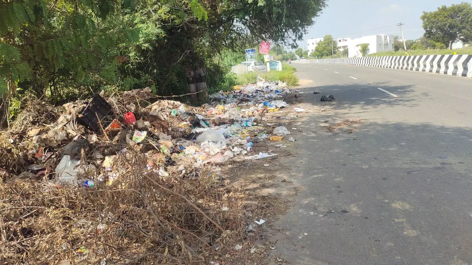 கரூர் மாவட்டம் காதப்பாறை ஊராட்சி நாவல் நகர் 5-வது தெரு முன்பு மெயின் ரோட்டில் ஏராளமான பிளாஸ்டிக் குப்பைகள் கொட்டப்பட்டு தேங்கியுள்ளது. இந்த பிளாஸ்டிக் குப்பைகள் காற்றில் பறந்து அருகில் உள்ள குடியிருப்பு பகுதிக்குள் செல்கிறது. இதனால் குடியிருப்புவாசிகள் பெரும் சிரமத்திற்கு உள்ளாகி வருகிறார்கள். ஒரு மாத காலமாக இந்த குப்பைகள் அகற்றப்படாமல் உள்ளதால், மேலும் குப்பைகள் அதிகரித்து சுகாதார சீர்கேடு ஏற்படும் நிலை உள்ளது. எனவே சம்பந்தப்பட்ட அதிகாரிகள் விரைந்து நடவடிக்கை எடுத்து தேங்கியிருக்கும் பிளாஸ்டிக் குப்பைகளை அகற்ற வேண்டும் என கேட்டுக்கொள்கிறோம்.