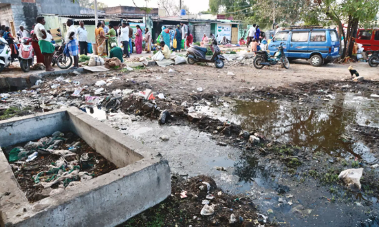 வேலூரை அடுத்த பொய்கையில் வாரந்தோறும் செவ்வாய்க்கிழமை அன்று வாரச்சந்தை நடக்கிறது. பொதுமக்கள் வசதிக்காக கட்டப்பட்ட தண்ணீர் தொட்டியில் இருந்து வெளியேறும் தண்ணீர் வடிந்து செல்ல முறையான கால்வாய் வசதி இல்லை. அதில் அடைப்பு ஏற்பட்டு கழிவுநீர் குளம்போல் தேங்கி நிற்கிறது. வாரச்சந்தை வளாகத்தில் சிமெண்டு தளம், கால்வாய் வசதி செய்து கொடுக்க சம்பந்தப்பட்ட அதிகாரிகள் நடவடிக்கை எடுக்க வேண்டும்.