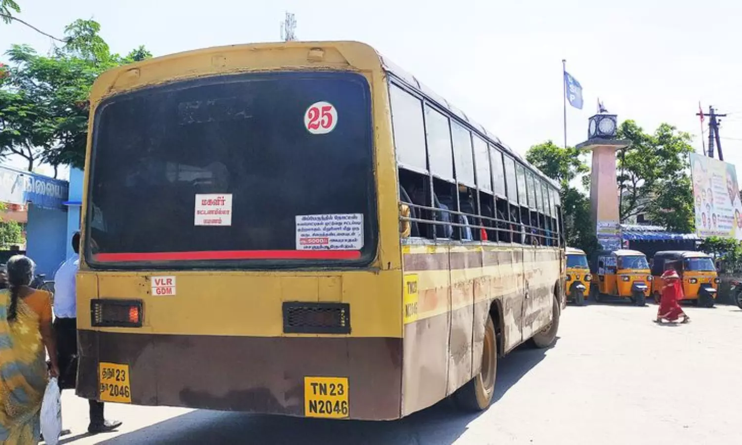 ஆனால் பின்பக்கம் பெயர் பலகை வைக்கவில்லை. முன்பக்கம் ெபயர் பலகை ைவப்பதுபோல் பின் பக்கமும் ைவக்க வேண்டும். இல்லைேயல், ஊர் பெயர் எழுதப்பட்ட ஸ்டிக்கர் ஒட்ட வேண்டும். இதற்கு போக்குவரத்துக்கழக பணிமனை மேலாளர்கள் நடவடிக்கை எடுக்க வேண்டும்.