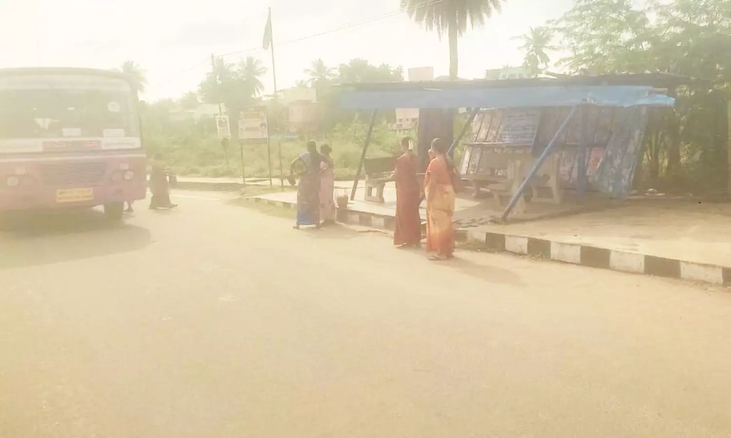 திருச்சி மாவட்டம் காட்டூர் சக்தி நகர் பஸ் நிறுத்தத்தில் புதிதாக பயணிகள் நிழற்குடை அமைக்கப்பட்டுள்ளது. இந்த நிலையில் இந்த நிற்குடை தற்போது சாய்ந்த நிலையில் எப்போது வேண்டுமானாலும் கீழே விழும் நிலையில் உள்ளது. இதனால் பயணிகள் பெரிதும் அச்சப்பட்டு நிழற்குடையில் நிற்காமல் வெளியே நின்று செல்கின்றனர். இதனால் மழை மற்றும் வெயிலில் பயணிகள் பெரிதும் அவதிப்பட்டு வருகின்றனர். எனவே இதுகுறித்து சம்பந்தப்பட்ட அதிகாரிகள் விரைந்து நடவடிக்கை எடுத்து சாய்ந்த நிலையில் காணப்படும் பயணிகள் நிழற்குடையை சரி செய்ய வேண்டும் என கேட்டுக்கொள்கிறோம்.