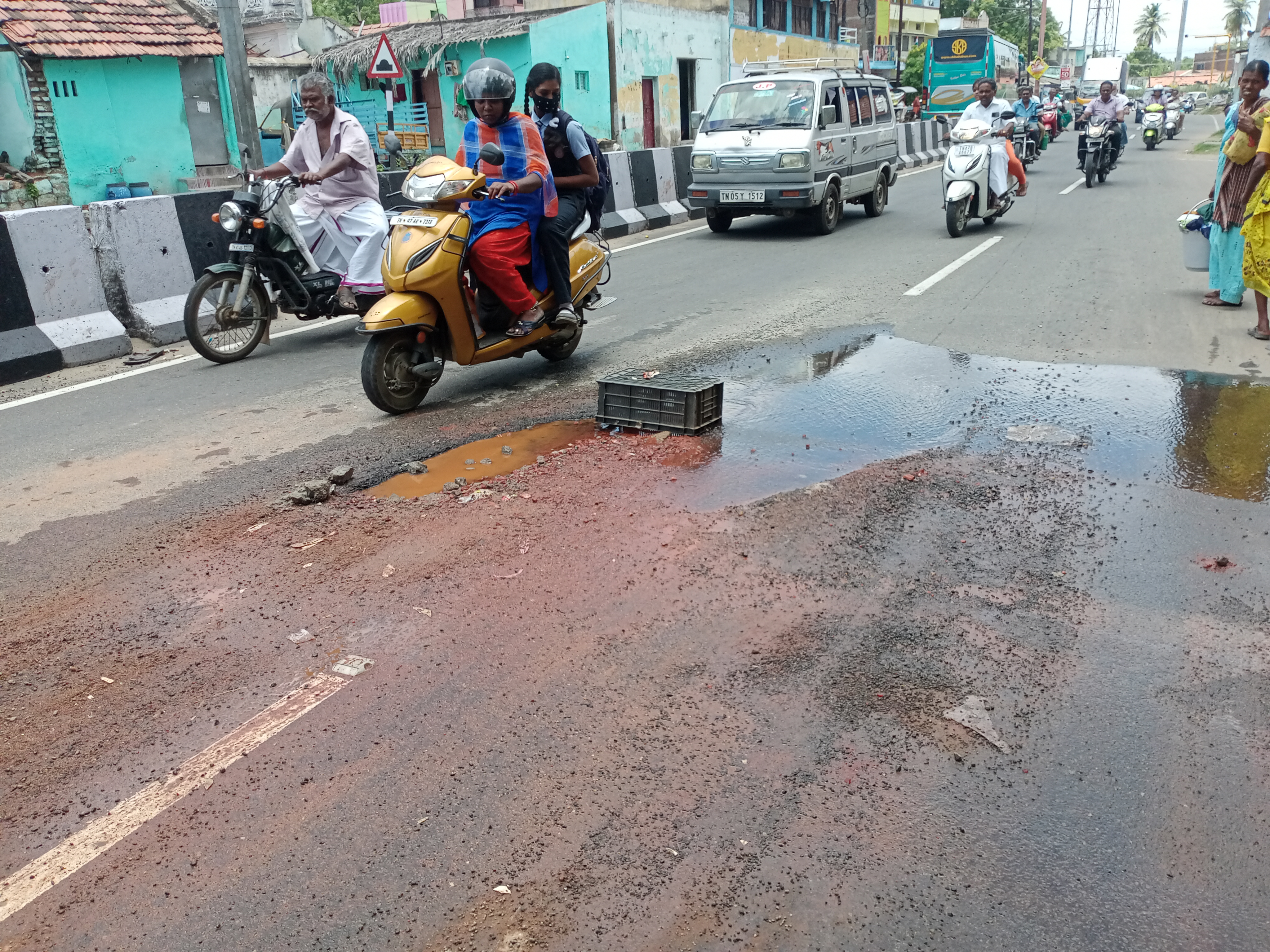 கரூர் மாவட்டம், பழைய பஸ் நிலையம் அருகே உள்ள பிரம்ம தீட்ச சாலையின் ஓரத்தில் குடிநீர் குழாயில் உடைப்பு ஏற்பட்டு, தண்ணீர் வீணாகி சாலையின் நடுவே ஓடுகிறது. இதனால் இப்பகுதி மக்கள் போதிய குடிநீர் இன்றி பெரிதும் அவதிப்பட்டு வருகின்றனர். மேலும் தண்ணீர் சாலையில் ஓடுவதினால் வாகன ஓட்டிகள் பெரிதும் அவதிப்பட்டு வருகின்றனர். எனவே இதுகுறித்து சம்பந்தப்பட்ட அதிகாரிகள் நடவடிக்கை எடுக்க வேண்டும் என கேட்டுக்கொள்கிறோம்.