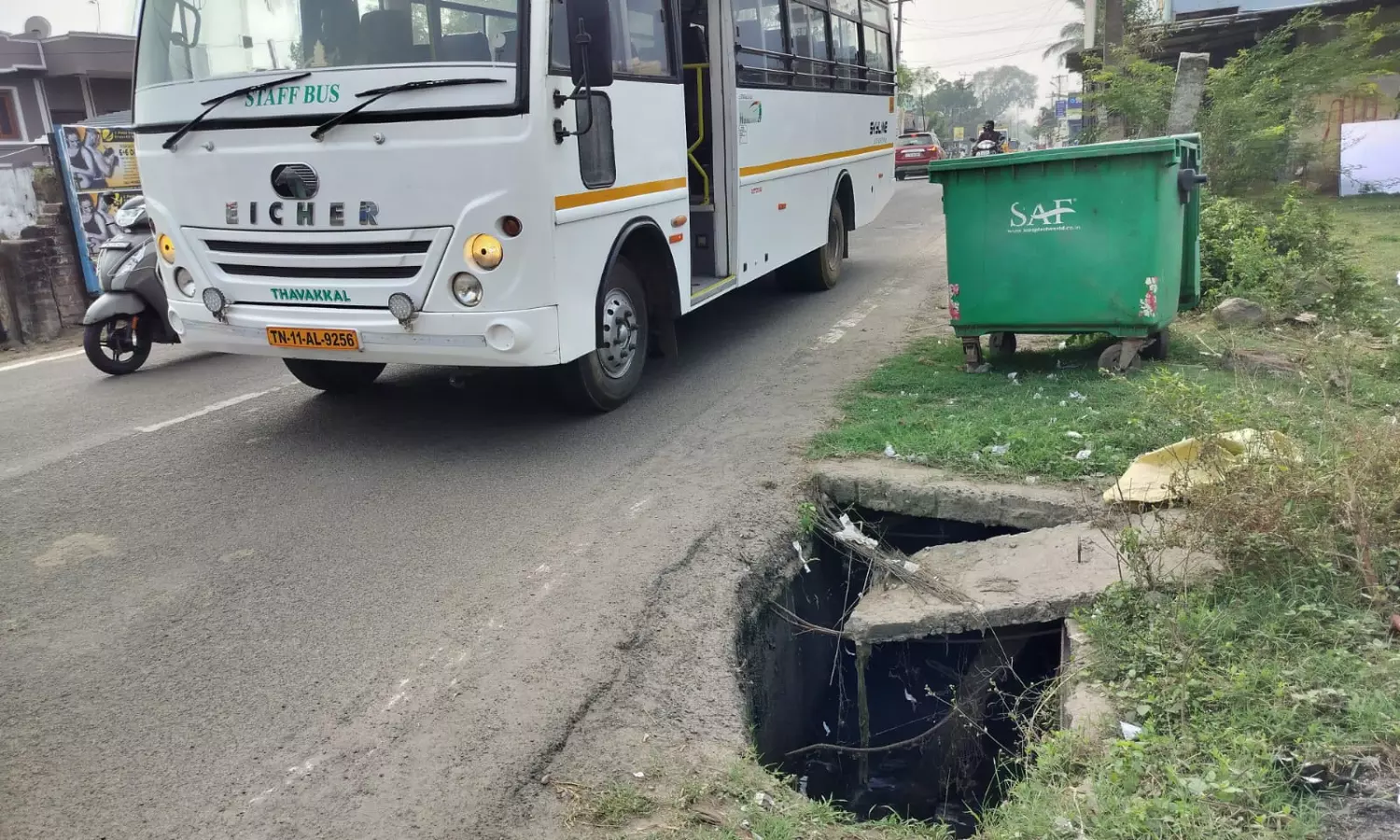 காஞ்சிபுரம் மாவட்டம், குன்றத்தூர் ஊராட்சி ஒன்றியத்துக்கு உட்பட்ட மணிமங்கலம் ஊராட்சியில், தாம்பரம் - ஸ்ரீபெரும்புதூர் சாலை எப்போதும் வாகனங்கள் வந்து செல்லும் பரபரப்பான சாலை. இந்த சாலையில் உள்ள மழைநீர் வடிகால் திறந்த நிலையில் உள்ளது. சாலையில் தடுப்பு இல்லாததால் வாகன ஓட்டிகளும், பொதுமக்களும் அச்சத்துடனே கடந்து செல்கின்றனர். மேலும் கால்நடைகளும் தவறி விழும் அபாய நிலை ஏற்பட்டுள்ளது. எனேவ மாநகராட்சி துறை அதிகாரிகள் உடனடியாக நடவடிக்கை எடுத்து ஆபத்தான நிலையில் உள்ள மழைநீர் கால்வாயை சரிசெய்யவேண்டும்.