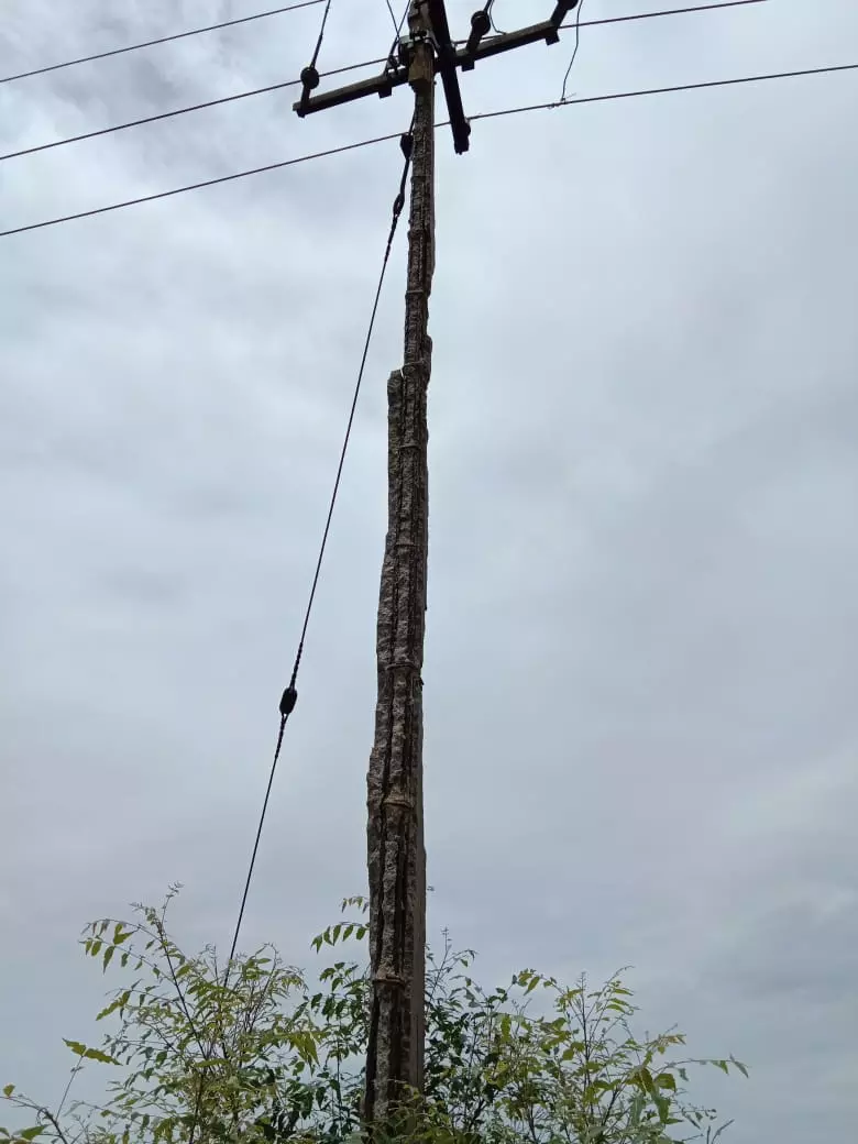 கரூர் மாவட்டம், தோகைமலை ஒன்றியம், பாதிரிப்பட்டி அருகே உள்ள பள்ளிப்பட்டி மேற்கு தெருவில் சாலையோரம் மின்கம்பம் அமைக்கப்பட்டுள்ளது. இந்த மின்கம்பம் அமைக்கப்பட்டு பல ஆண்டுகள் ஆனதால் தற்போது சிதிலமடைந்து சிமெண்டு பூச்சுகள் உதிர்ந்து எலும்புக்கூடுபோல் காட்சியளிக்கிறது. பொதுமக்கள் நடமாட்டத்தின்போது இந்த மின் கம்பம் முறிந்து விழுந்தால் உயிரிழப்பு ஏற்பட அதிக வாய்ப்பு உள்ளது. எனவே இதுகுறித்து சம்பந்தப்பட்ட மின்சாரத்துறை அதிகாரிகள் விரைந்து நடவடிக்கை எடுக்க வேண்டும் என கேட்டுக்கொள்கிறோம்.