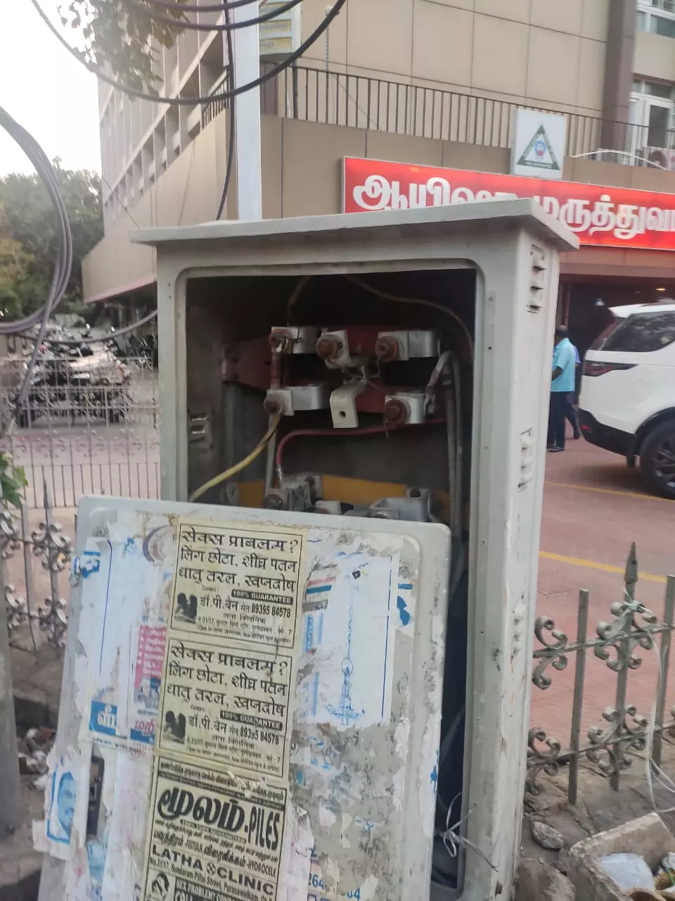சென்னை புரசைவாக்கம் மோட்சம் பஸ் நிறுத்தம் அருகே இருக்கும் மின் இணைப்பு பெட்டி திறந்த நிலையில் ஆபத்தாக காட்சியளிக்கிறது. இந்த மின் இணைப்பு பெட்டிக்கு அருகில் ஆஸ்பத்திரியும் இருப்பதால் விபரீதங்கள் எதுவும் ஏற்படும் முன்பு, திறந்த நிலையில் இருக்கும் மின் இணைப்பு பெட்டியை உடனடியாக சரி செய்ய வேண்டும்.