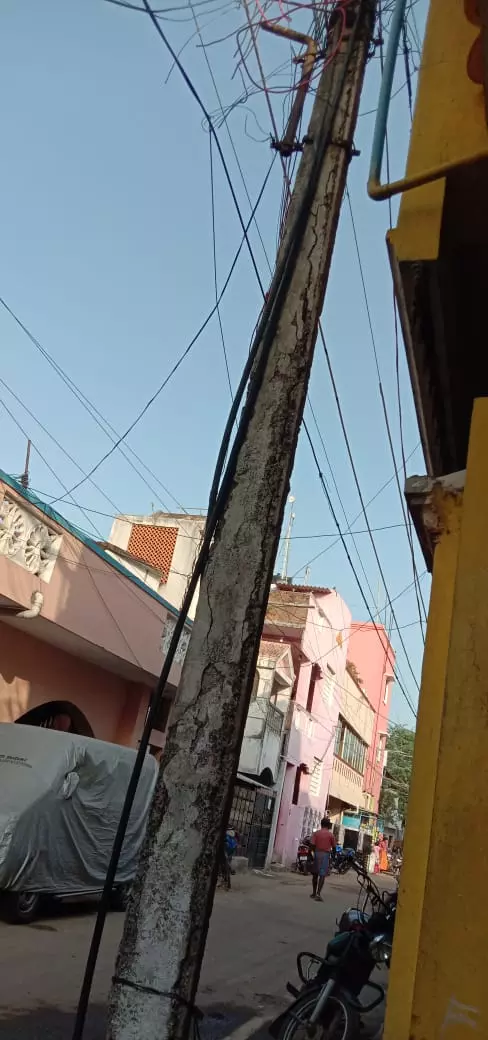 சென்னை ராமாபுரம் கங்கை அம்மன் கோவில் தெருவில் உள்ள மின்கம்பம் ஒன்று சேதமடைந்து காட்சியளிக்கிறது. இதன் சிமெண்ட் பூச்சுகள் உடைந்து, கம்பிகள் வெளியே தெரியும் வகையில் பழுதடைந்துள்ளது. மின்வாரியம் கவனித்து முன்எச்சரிக்கை நடவடிக்கை எடுத்து மின்கம்பத்தை சீரமைக்க வேண்டுகிறோம்.