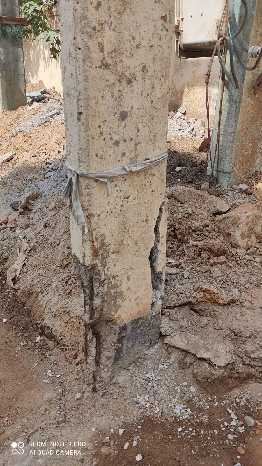 உடைந்த நிலையில் மின்கம்பம்