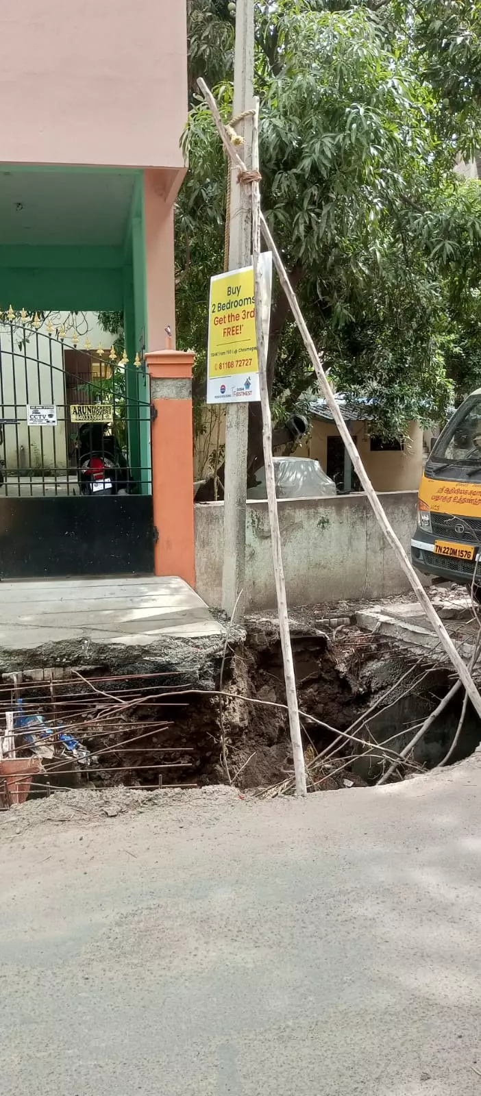 சென்னை சோழிங்கநல்லூர் பகுதியிலுள்ள புழுதிவாக்கம் மெயின் ரோட்டில் இருக்கும் மின்கம்பம் அபாயகரமாக காட்சியளிக்கிறது. அந்த மின்கம்பத்தை இரண்டு கம்புகள் தான் தற்காழிகமாக தாங்கி வருகிறது. எந்த நேரத்திலும் இந்த மின்கம்பம் கீழே விழுந்துவிடும் என்பதால் விரைவில் இந்த பிரச்சினைக்கு முற்றுப்புள்ளி வைக்க வேண்டும்.