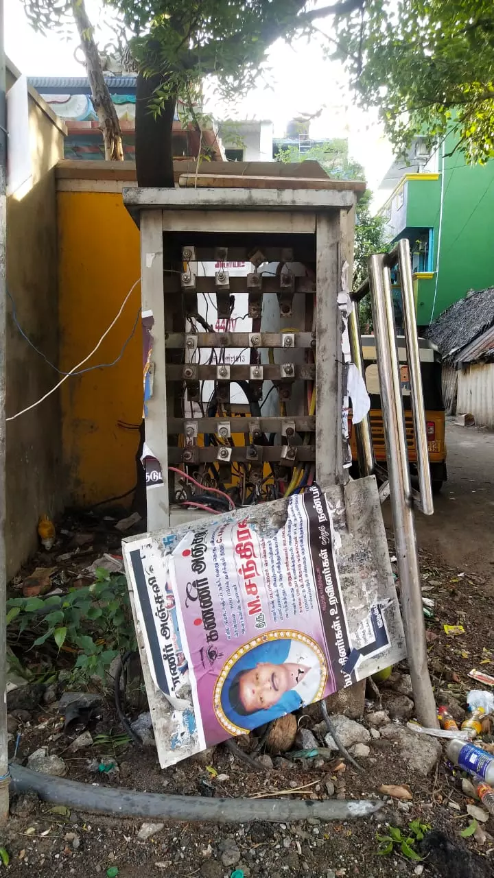 சென்னை வியாசர்பாடி சஞ்சய் நகர், மாரியம்மன் கோவில் சந்திப்பு பகுதியில் இருக்கும் மின் இணைப்பு பெட்டி திறந்த நிலையில் ஆபத்தாக காட்சி தருகிறது. குழந்தைகள் மற்றும் முதியவர்கள் அதிகம் நடமாடும் பகுதி என்பதால் அசம்பாவிதம் ஏற்பட்டுவிடுமோ! என்று அச்சமாக இருக்கிறது. எனவே மின்சார வாரியம் கவனித்து தீர்வு வழங்குமா?