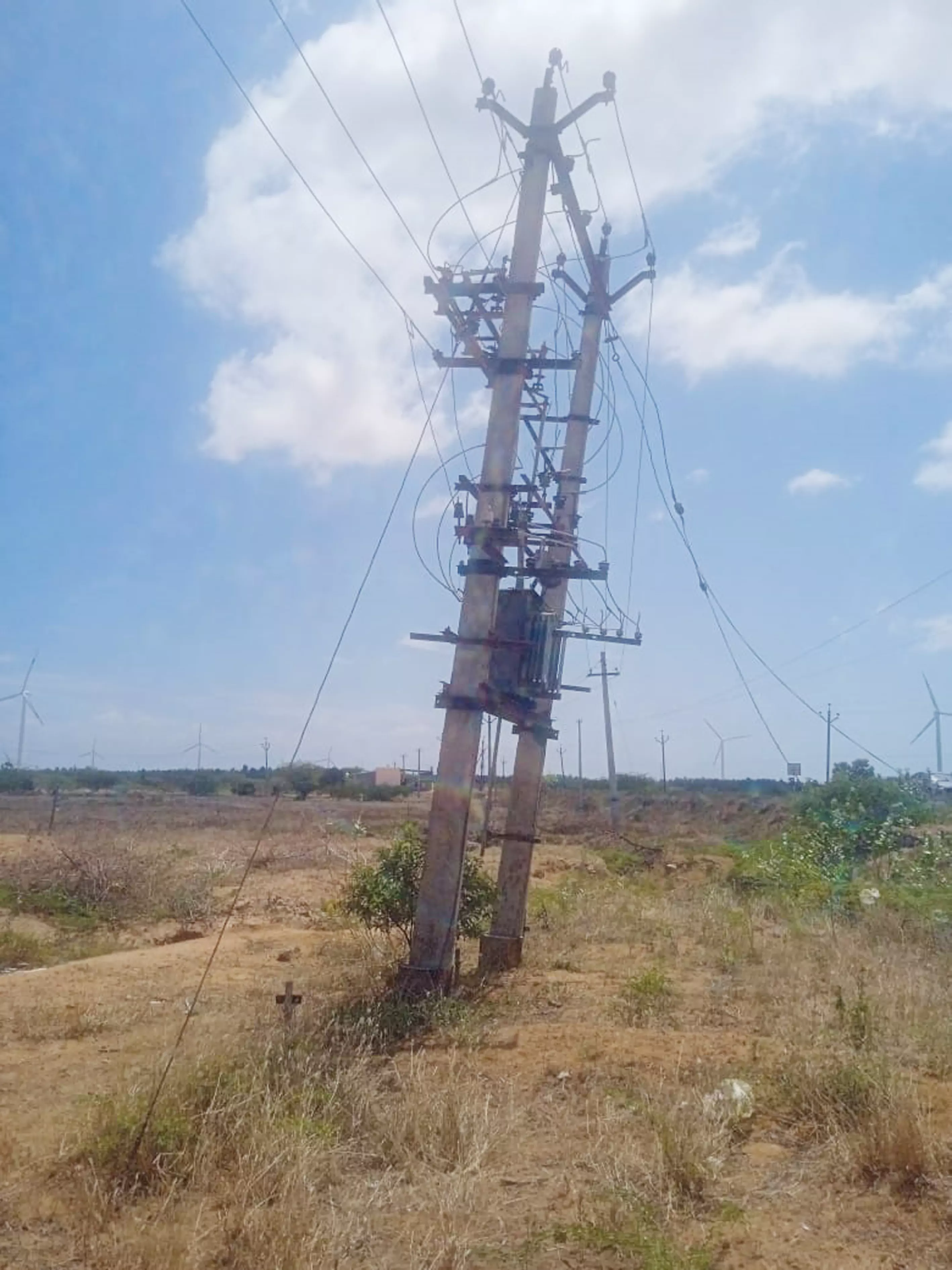 நெல்லை மாவட்டம் ராதாபுரம் தாலுகா திருவம்பலபுரம் பஞ்சாயத்து உலக ரட்சகர்புரம் ஊருக்கு கீழ்புறம் உள்ள மின்மாற்றி சாய்ந்த நிலையில் உள்ளது. மின்மாற்றியின் மின்கம்பங்களின் அடிப்பகுதி சேதமடைந்த நிலையில் உள்ளதால் பலத்த காற்றில் சரியும் அபாயம் உள்ளது. எனவே ஆபத்தான மின்மாற்றியை சீரமைப்பதற்கு அதிகாரிகள் ஏற்பாடு செய்ய வேண்டுகிறேன்.