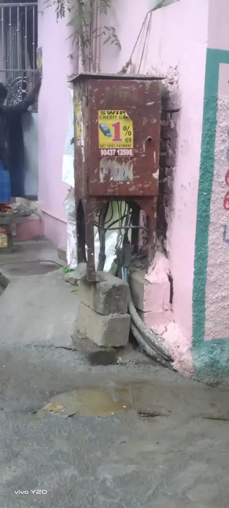 சென்னை மாநகராட்சி 8-வது மண்டலம் 101-வது வார்டுக்குட்பட்ட மஞ்சக்கொல்லை தெருவில் உள்ள மின்பெட்டிகள் அபாயகரமான நிலையில் திறந்தநிலையிலும், ஒயர்கள் வெளியே நீண்டு ஆபத்தாகவும் கிடக்கிறது. மின்சாரவாரிய அதிகாரிகளிடம் புகார் தெரிவித்தால் அதனை முழுவதுமாக சீர்செய்யாமல் அலட்சியமாக கற்களை கொண்டு அடைத்து செல்கிறார்கள். மின்விபத்தை ஏற்படும் முன்னர் துரித நடவடிக்கையாக மின்பெட்டிகளை சீரமைக்க சம்பந்தபட்ட மின்வாரிய அதிகாரிகள் முன்வரவேண்டும்.