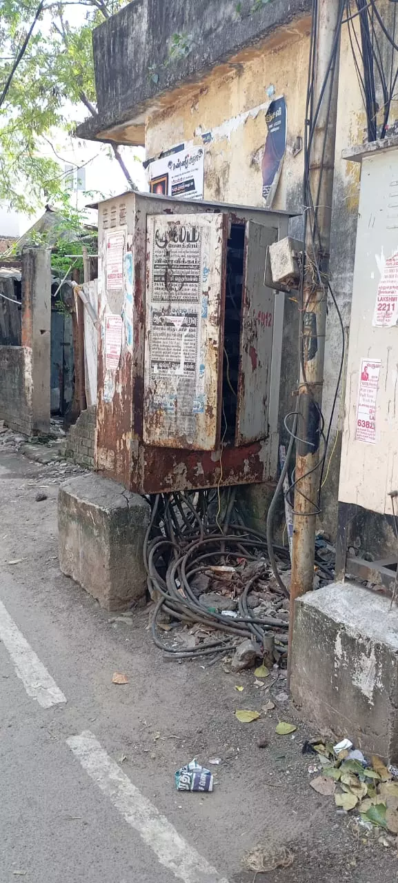 சென்னை வியாசர்பாடி பாலகிருஷ்ணன் தெருவில் உள்ள மின்பெட்டி, மூடி திறந்தவாறு ஆபத்தான வகையில் உள்ளது. இந்த தெருவில் அதிகமானோர் வசிக்கின்றனர். சாயைில் குழந்தைகள், முதியவர்கள் என அனைவரும் செல்கின்றனர். மழைக்காலங்களில் மின்கசிவு ஏற்படும் அபாய நிலையும் ஏற்பட்டுள்ளது. இதனால் அப்பகுதியில் வசிக்கும் மக்கள் அச்சத்துடனே இருக்கின்றனர். எனவே சம்பந்தப்பட்ட மாநகராட்சி அதிகாரிகள் உடனடியாக நடவடிக்கை எடுக்கவேண்டும்.