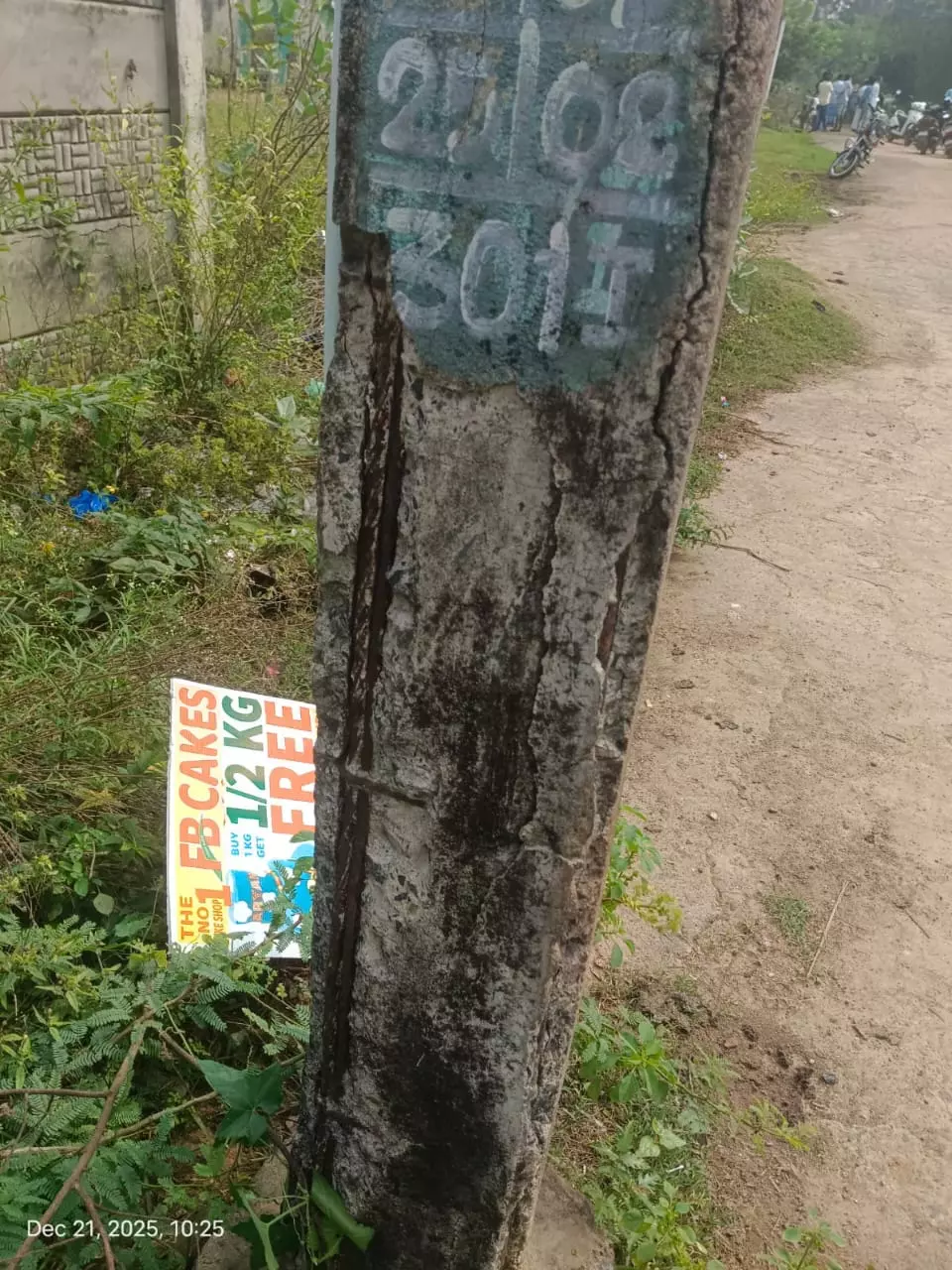 காஞ்சீபுரம் மாவட்டம் குன்றத்தூர் ஒன்றியம் படப்பை ஊராட்சி ஆத்தனஞ்சேரி காலனி, காந்தி தெருவில் விநாயகர் கோவில் அருகே உள்ள மின்கம்பம் சேதமடைந்து அதன் சிமெண்டு பெயர்ந்து கீழே விழும் நிலையில் உள்ளது. இதனால் கோவிலுக்கு வரும் மக்கள் அச்சத்துடனே செல்கின்றனர். எனவே சம்பந்தப்பட்ட துறை மின்வாரிய அதிகாரிகள் உடனடியாக நடவடிக்கை எடுத்து மின்கம்பத்தை சரிசெய்து தரவேண்டி அப்பகுதி மக்கள் கோரிக்கை வைக்கின்றனர்.