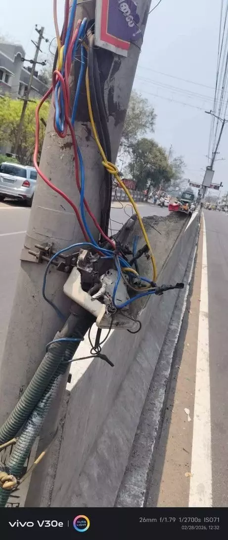வேலூரில் உள்ள மக்கான் பகுதியில் பெங்களூரு சாலையின் நடுவே தெரு விளக்குகளுக்கு செல்லும் மின் ஒயர் இணைப்புகள் பாதுகாப்பற்ற, ஆபத்தான நிலையில் உள்ளது. அசம்பாவிதம் நடக்கும் முன் சம்பந்தப்பட்ட மின்வாரியத்துறையினர் நடவடிக்கை எடுத்து பொதுமக்களுக்கு எந்தவிதமான ஆபத்தும் நடக்காமல் இருக்க மின்ஒயர்களை பாதுகாப்பாக அமைக்க வேண்டும்.