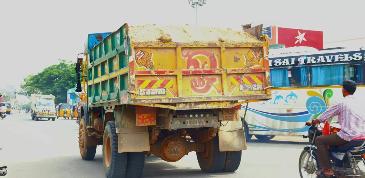 திருவள்ளூர் மாவட்டம் திருத்தணி அரக்கோணம் சாலையில் மணல் ஏற்றி செல்லும் லாரிகள் தார்பாய் மூடாமல் சென்று வருகின்றன. இதனால் அப்பகுதியின் வழியே செல்லும் வாகன ஓட்டிகளின் கண்ணீல் மணல் பட்டு விபத்து ஏற்படும் அபாயம் உள்ளது. எனவே மணல் ஏற்றி செல்லும் லாரிகள் தார்பாய் போட்டு மணலை எடுத்து செல்ல வேண்டும். அதற்கு சம்பந்தப்பட்ட அதிகாரிகள் உரிய நடவடிக்கை எடுக்க வேண்டும்.
