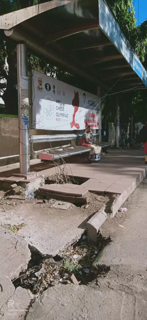 சென்னை மயிலாப்பூர் வள்ளுவர் சிலை பஸ் நிறுத்தம் மிகவும் பயங்கரமாக காட்சியளிக்கிறது. பஸ் நிறுத்தத்தில் உள்ள சிமெண்ட் மேடை பெயர்ந்தும், கற்கள் சிதைந்தும் காணப்படுகிறது. இரவு நேரத்தில் பஸ் நிறுத்தத்துக்கு வருபவர்கள் தடுக்கி கீழே விழுவது போன்ற சம்பவங்கள் அடிக்கடி நடக்கிறது. கூடிய விரைவில் சிதைந்த பஸ் நிறுத்தத்தை சீரமைக்க நடவடிக்கை எடுக்க வேண்டுகிறோம்.