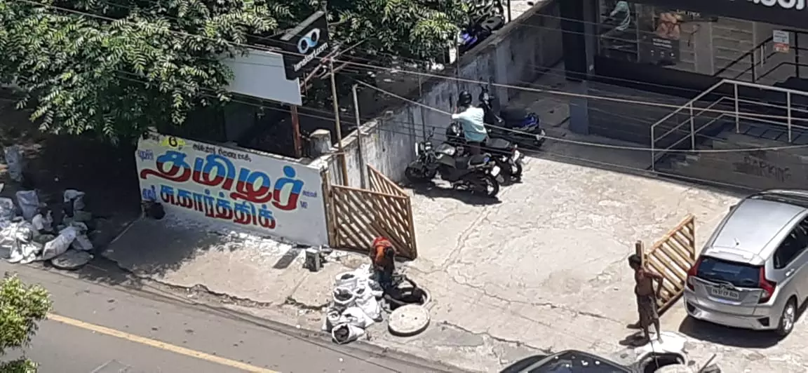 சென்னை ராதாகிருஷ்ணன் சாலையில் உள்ள பாதாள சாக்கடையை மனிதர்கள் உள்ளே இறங்கி சுத்தம் செய்து வருகிறார்கள். பாதாள சாக்கடையை சுத்தம் செய்ய மனிதர்களை பயன்படுத்தக்கூடாது என்று உயர் நீதிமன்றம் ஆணையிட்டும் இது போன்ற அவலங்கள் இன்னும் நடந்தேறி கொண்டுதான் இருக்கிறது. மீண்டும் உயிர் சேதம் ஏற்பட்டால் தான் இந்த நிலை மாறுமோ!