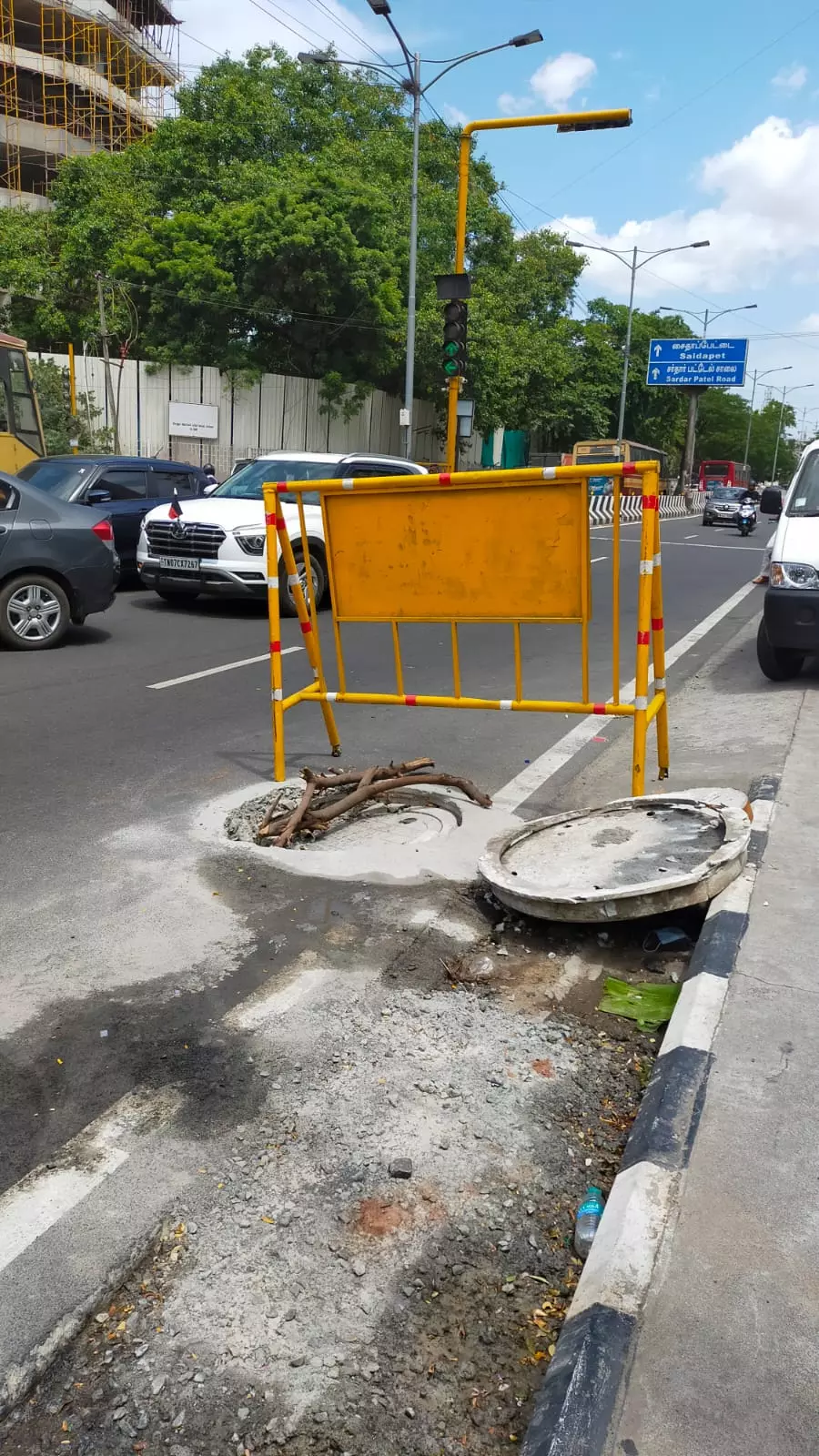 வேளச்சேரி மெயின் ரோடு பிரபல அங்காடி இருக்கும் 100 அடி சாலை சிக்னல் சந்திப்பில் மழைநீர் வடிகால்வாய் உள்ளது. இந்த மழைநீர் கால்வாயின் மூடியானது சேதமடைந்து காட்சி தருகிறது. கடந்த 15 நாட்களாகவே இதே நிலை தான் நீடிக்கிறது. மழைநீர் வடிகால்வாய் மூடி சரி செய்யப்படுமா?