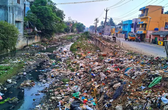 கால்வாயில் குவியும் குப்பைகள்