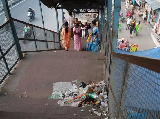 நடை மேம்பாலத்தில் குப்பைகள்