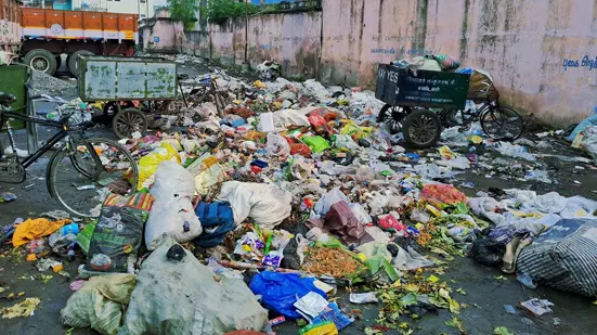வேலூர் மாநகராட்சிக்கு உட்பட்ட மக்கான் பகுதியில் ஆரம்ப சுகாதார நிலையம் உள்ளது. அதன் அருகே அரசு தொடக்கப்பள்ளி உள்ளது. அந்தப் பள்ளி அருகே லாரிகள் நிறுத்தும் இடத்தில் மாநகராட்சி ஊழியர்கள் வீடு, வீடாக சென்று சேகரித்து வந்த குப்பைகளை குவியல் குவியலாக கொட்டி வைத்துள்ளனர். சிலர் சேகரித்து வந்த குப்பைகளை வண்டிகளோடு விட்டு சென்றுள்ளனர். இதனால் அந்தப் பகுதியில் துர்நாற்றம் வீசுவதோடு சுகாதாரச் சீர்கேடு ஏற்படுகிறது. குப்பைகளை அகற்ற அதிகாரிகள் நடவடிக்கை எடுக்க வேண்டும்.